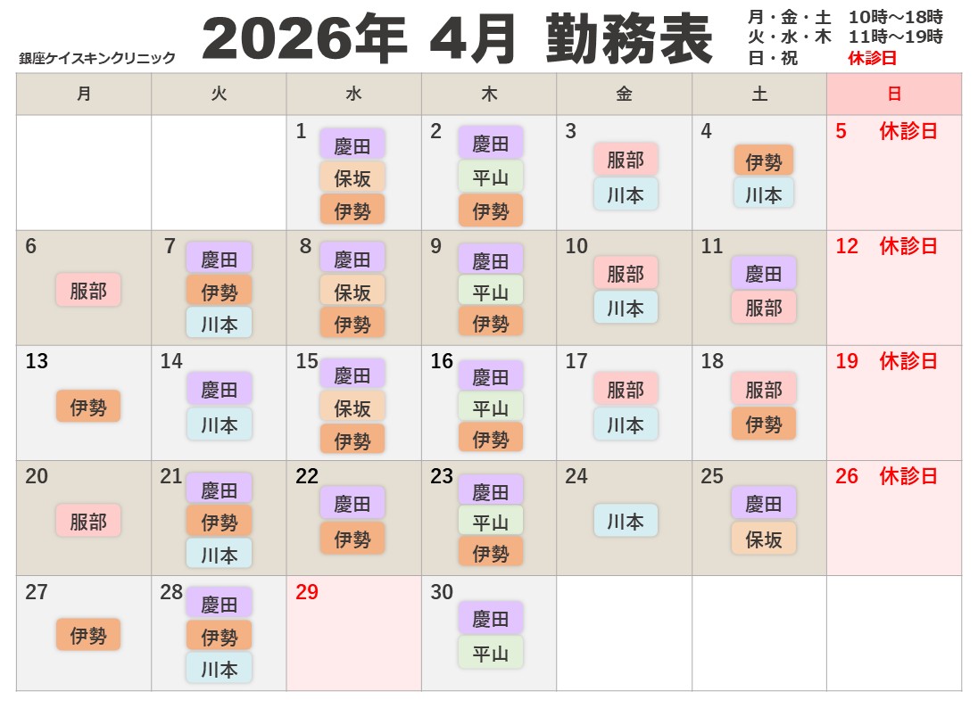 ※出勤予定が変更になる可能性がございますので、担当医師のご希望は、ご予約の際にお申し付けください。
