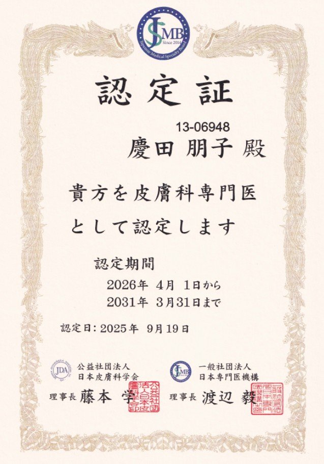 - 日本皮膚科学会認定皮膚科専門医