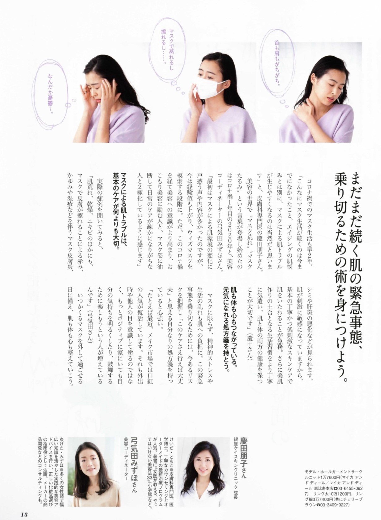 あまりにも長く続いた非日常から、マスクの下こそ、緊急事態宣言!この数年で加速したシミ、しわ、たるみ。放置していては、事態は一層深刻に。正しく守るスキンケア、効果的に攻めるメイクで、自信が持てる笑顔、取り戻しましょう。