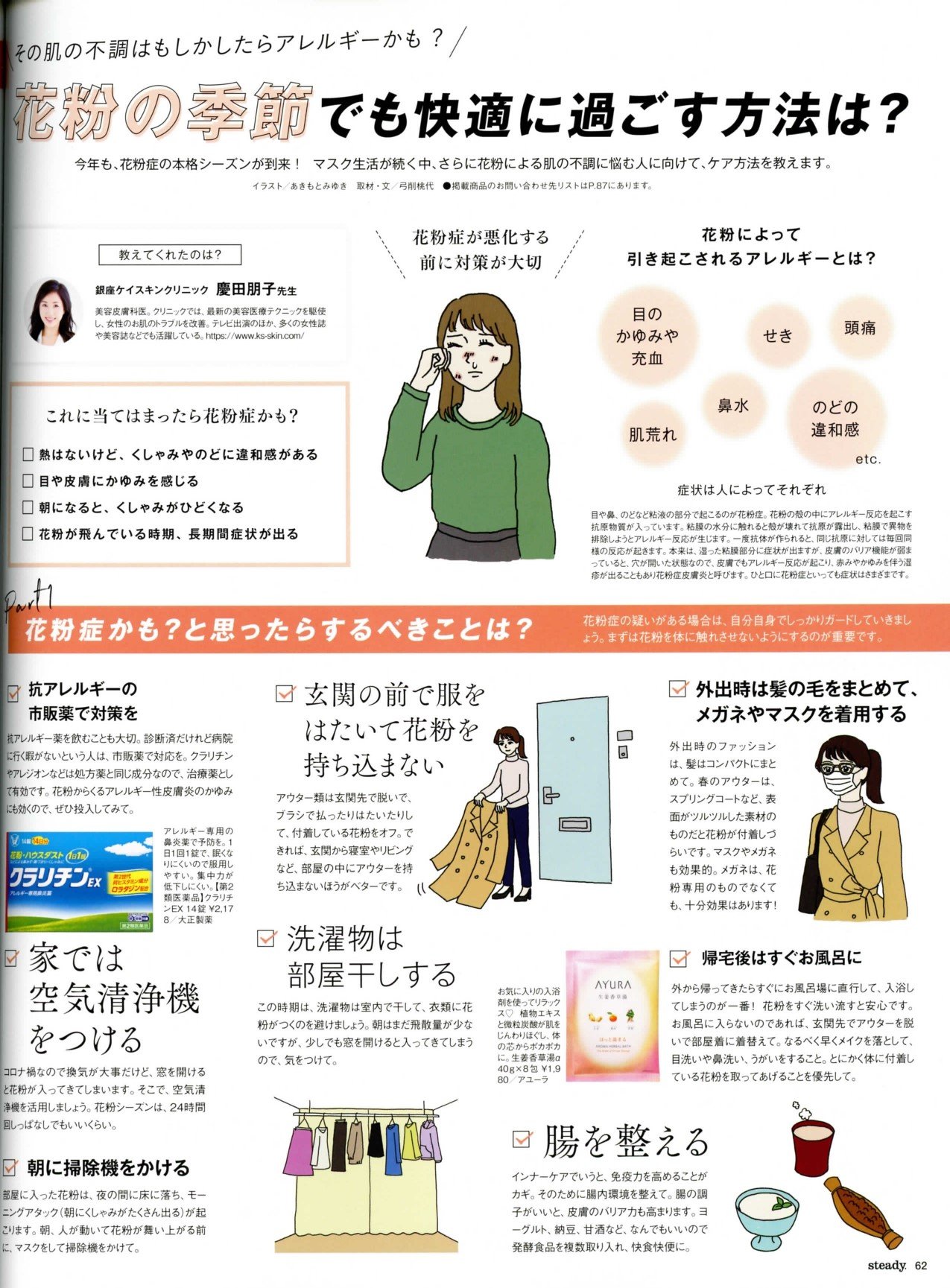 特集「その肌の不調ももしかしたらアレルギーかも?花粉の季節でも快適に過ごす方法は?」(P62~63掲載)に慶田院長の監修・取材記事が掲載されました。