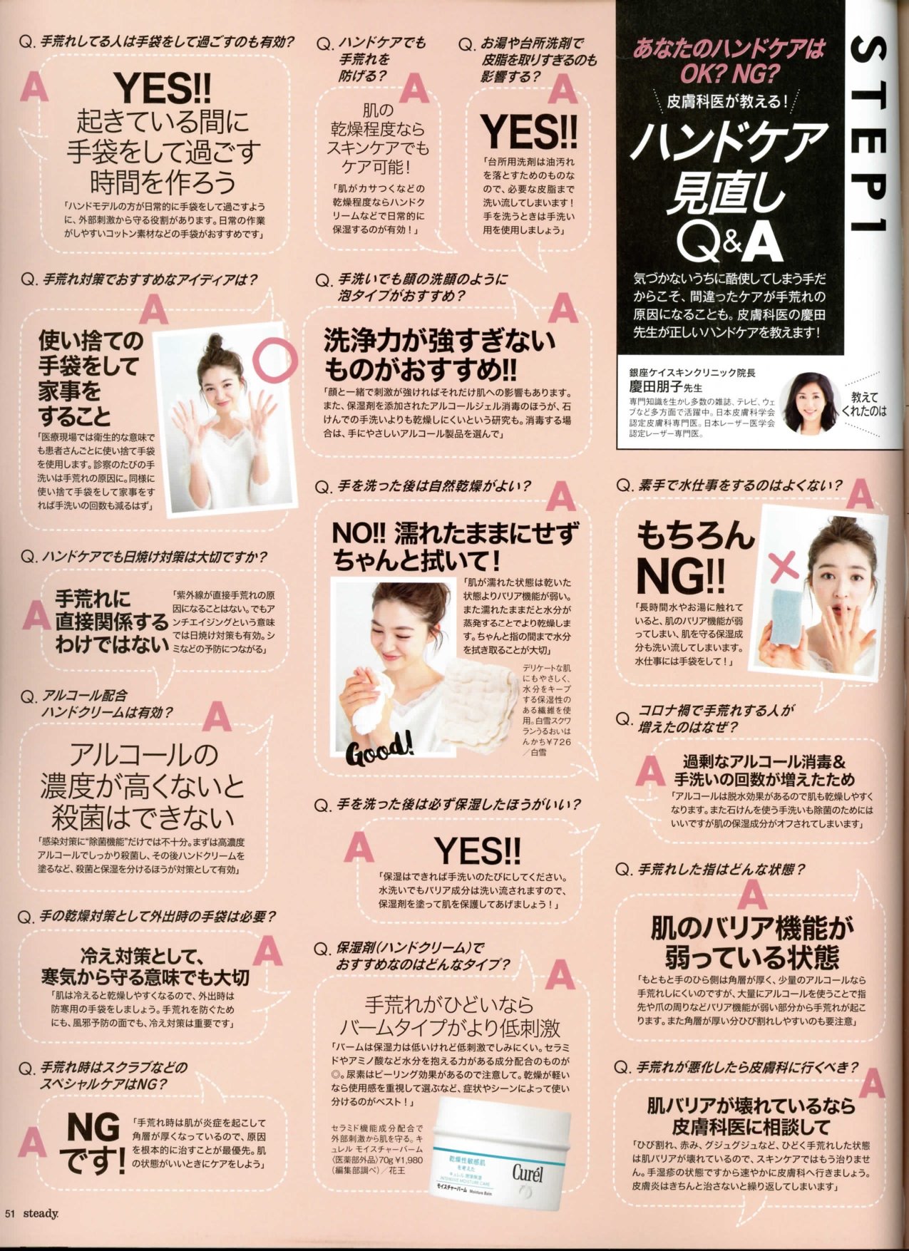 ‶毎日のアルコール消毒&手洗いで手荒れが悪化中!!今こそハンド美人になる方法″に慶田院長の監修記事が掲載されました(P50~51)