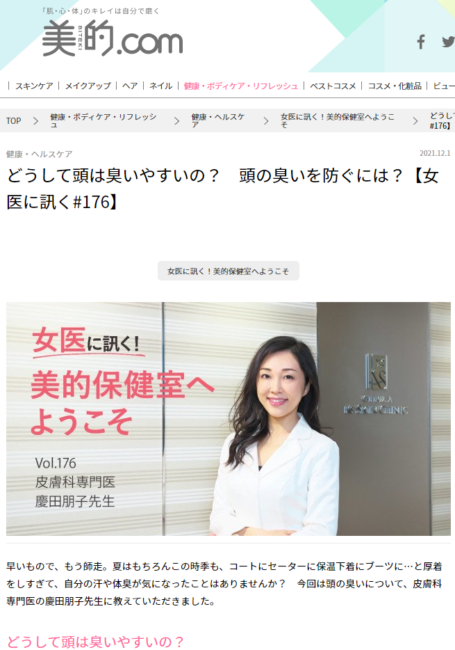 特集「女医に訊く#176どうして頭は臭いやすいの?頭の臭いを防ぐには?」に慶田院長の監修・取材記事が掲載されました。