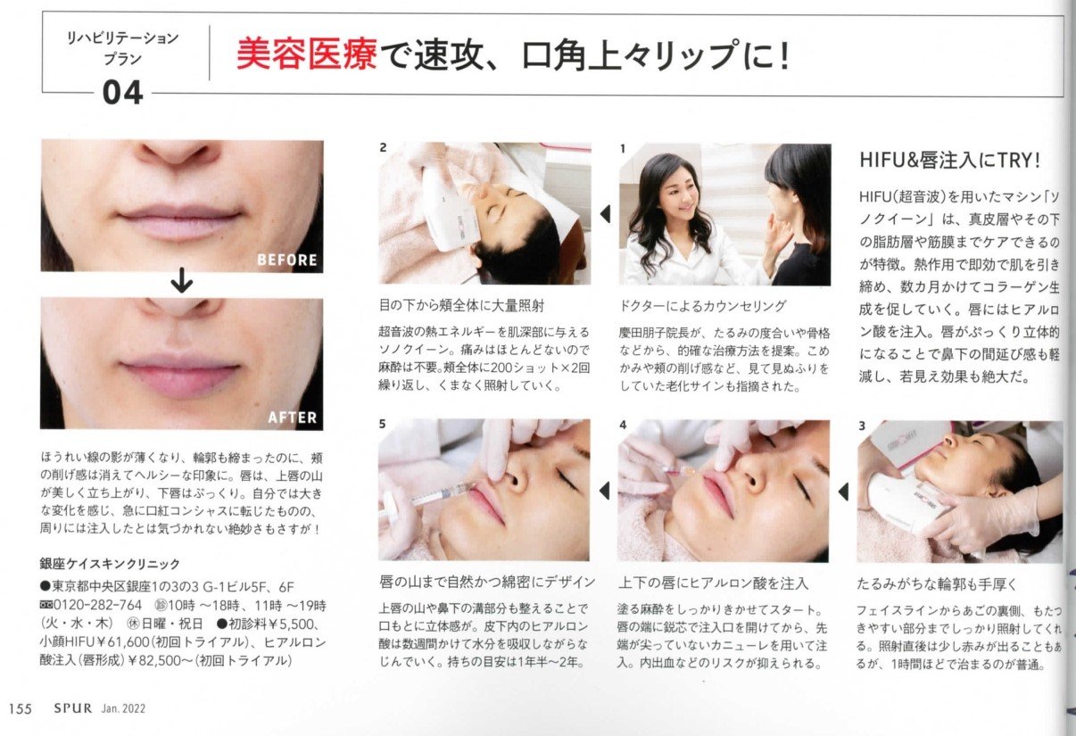 実際に当院でのHIFU&唇注入を行った施術の様子が掲載されています。