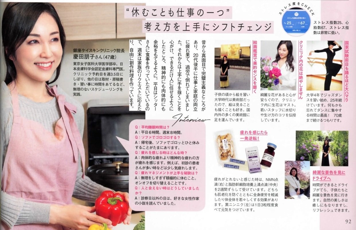 特集〝「疲れてる?」と聞かれたことがない人はワクワク上手″(P92)に慶田院長の紹介記事が掲載されました。