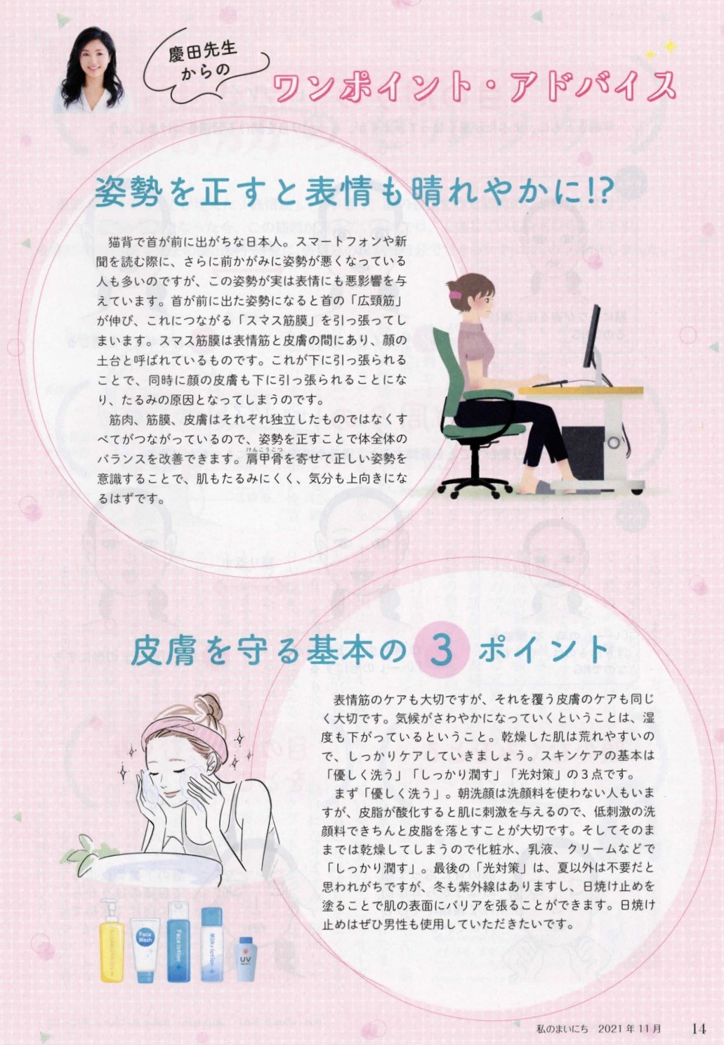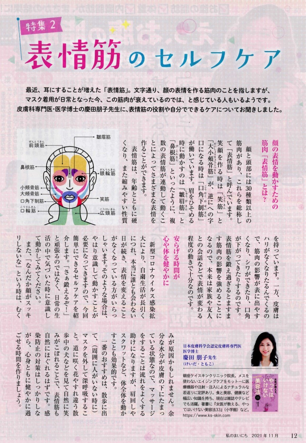 特集「表情筋のセルフケア」(P12~14掲載)に慶田院長の監修記事が掲載されています。