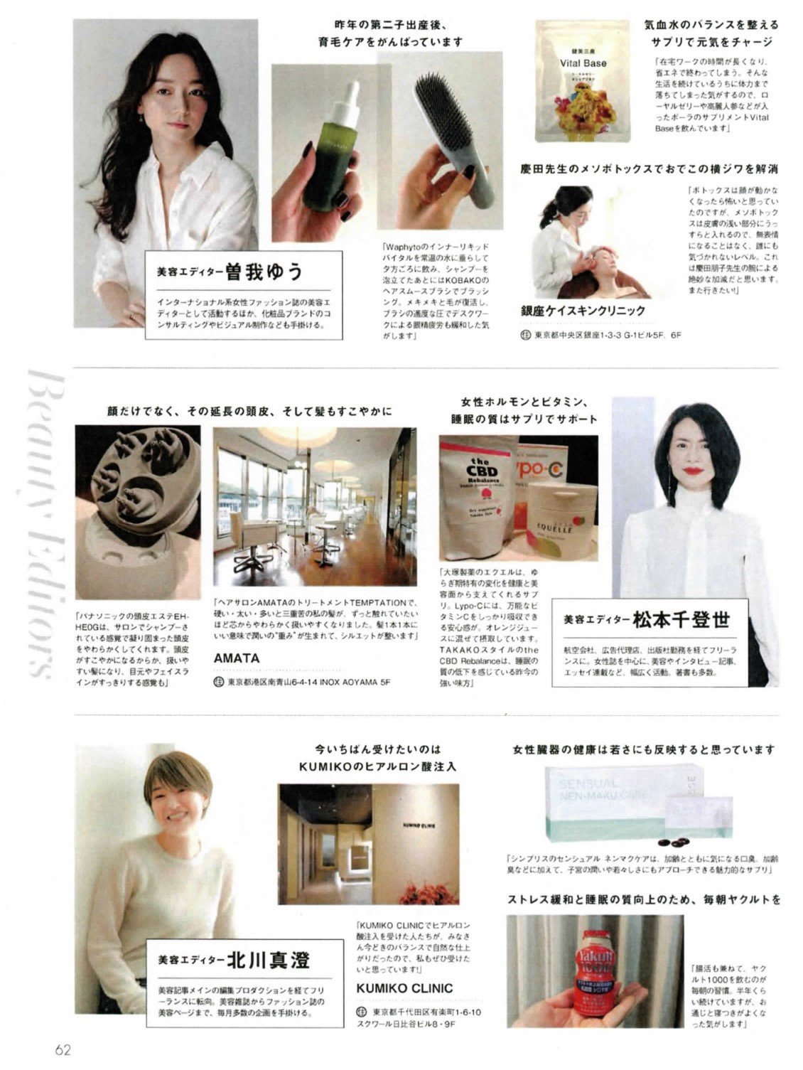 特集〝美のオタクたちに学ぶ、エイジレス・ビューティ″(P62掲載)に当院の施術をご紹介いただきました。