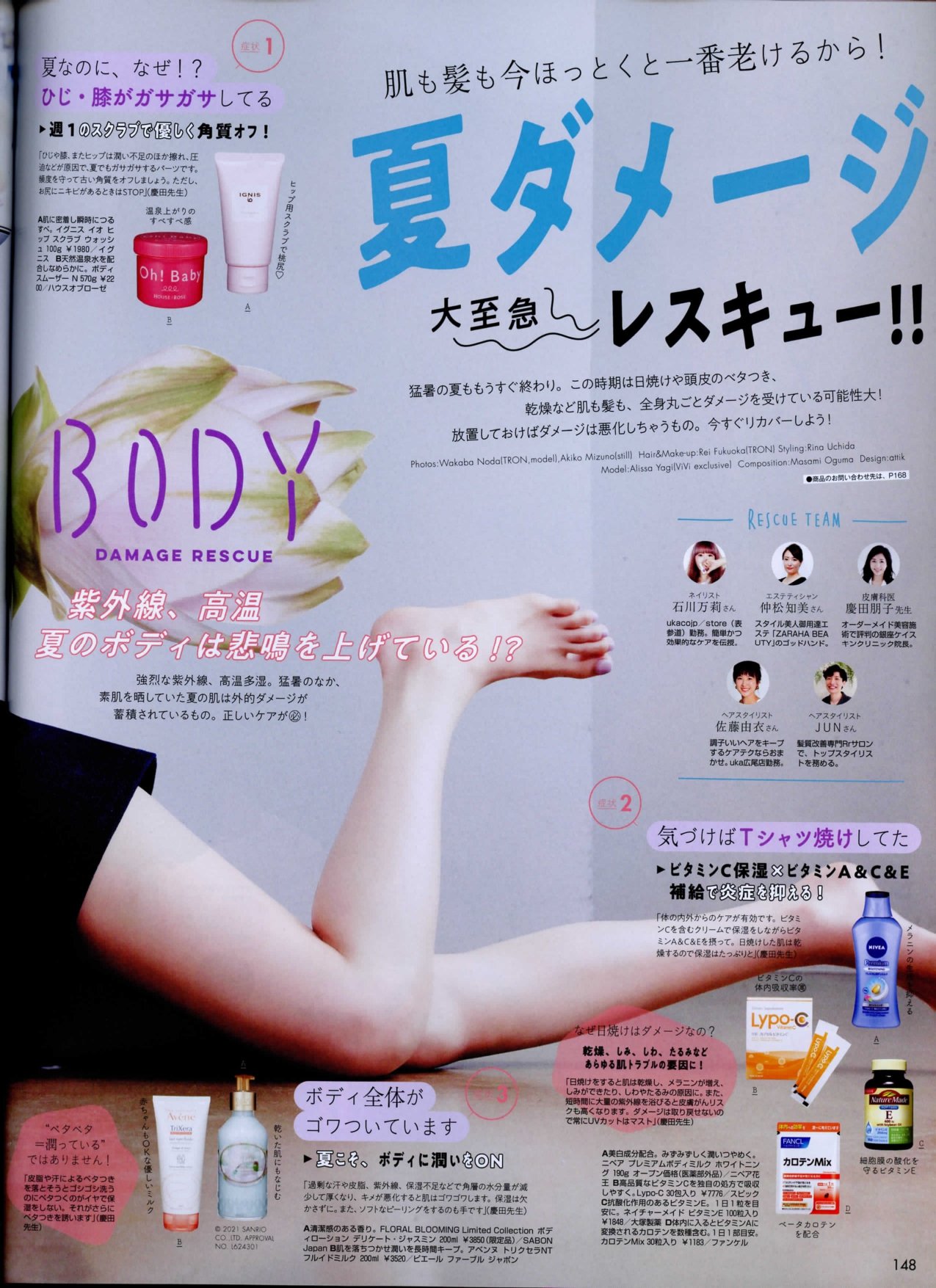特集 肌も髪も今ほっとくと一番老けるから!「夏ダメージ 大至急レスキュー!」に慶田院長の監修記事(P148~151)が掲載されました。