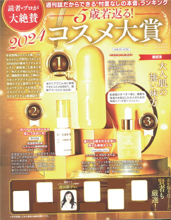 特集「読者・プロが大絶賛!週刊誌だからできる‟忖度なしの本音"ランキング5歳若返る!2024コスメ大賞」に慶田のコメントが掲載されました。