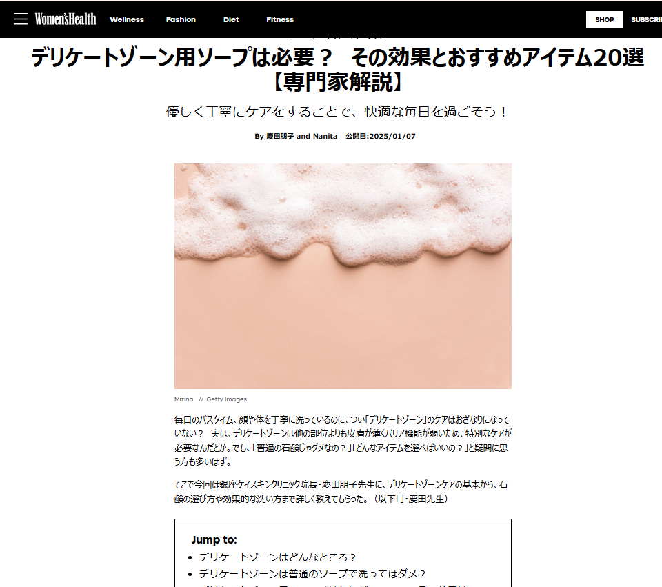特集「デリケートゾーン用ソープは必要?その効果とおすすめアイテム20選【専門家解説】」に慶田の取材・監修記事が掲載されました。