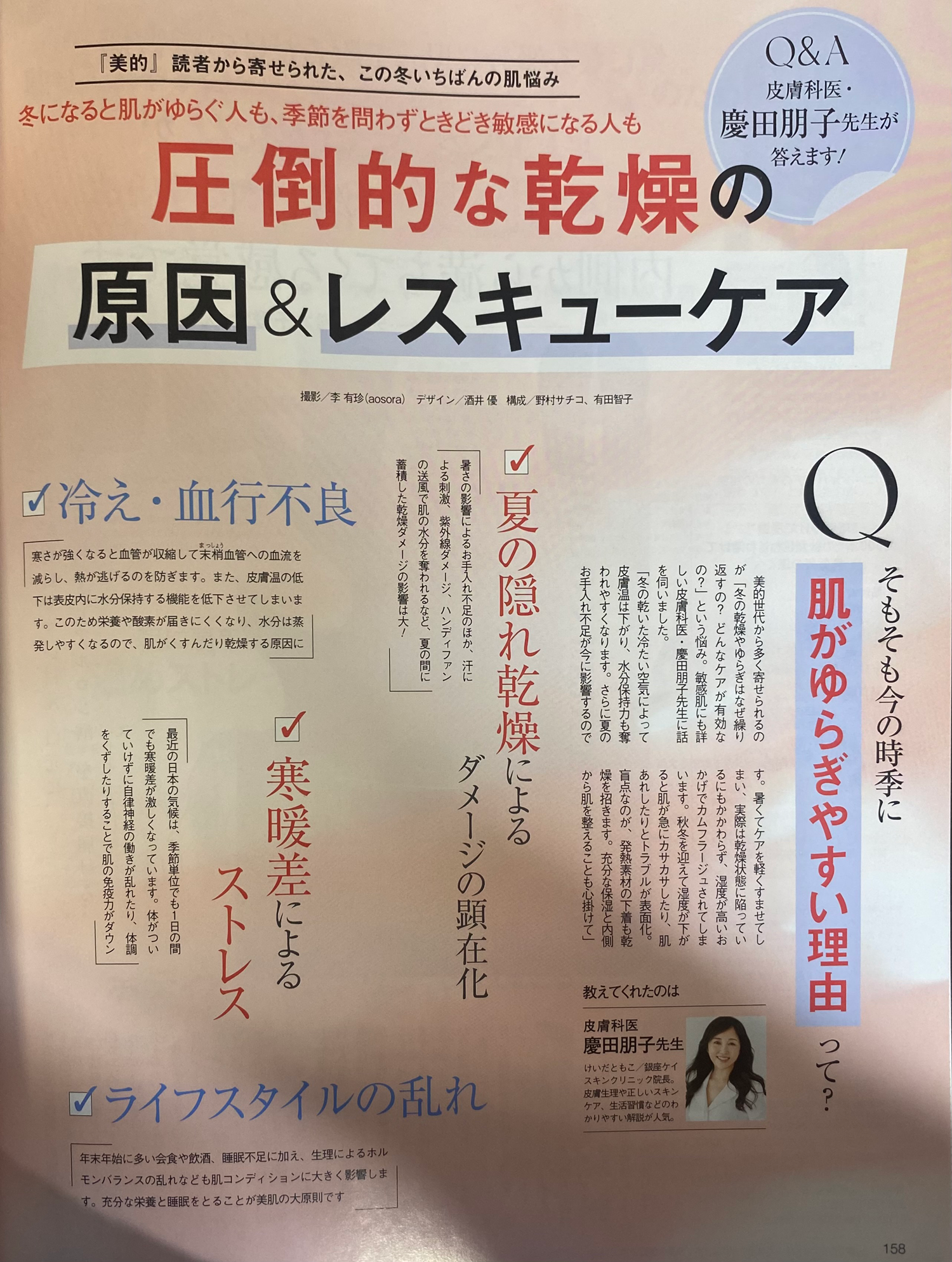 特集1「圧倒的な乾燥の原因&レスキューケア Q&A 皮膚科医慶田朋子が答えます!」