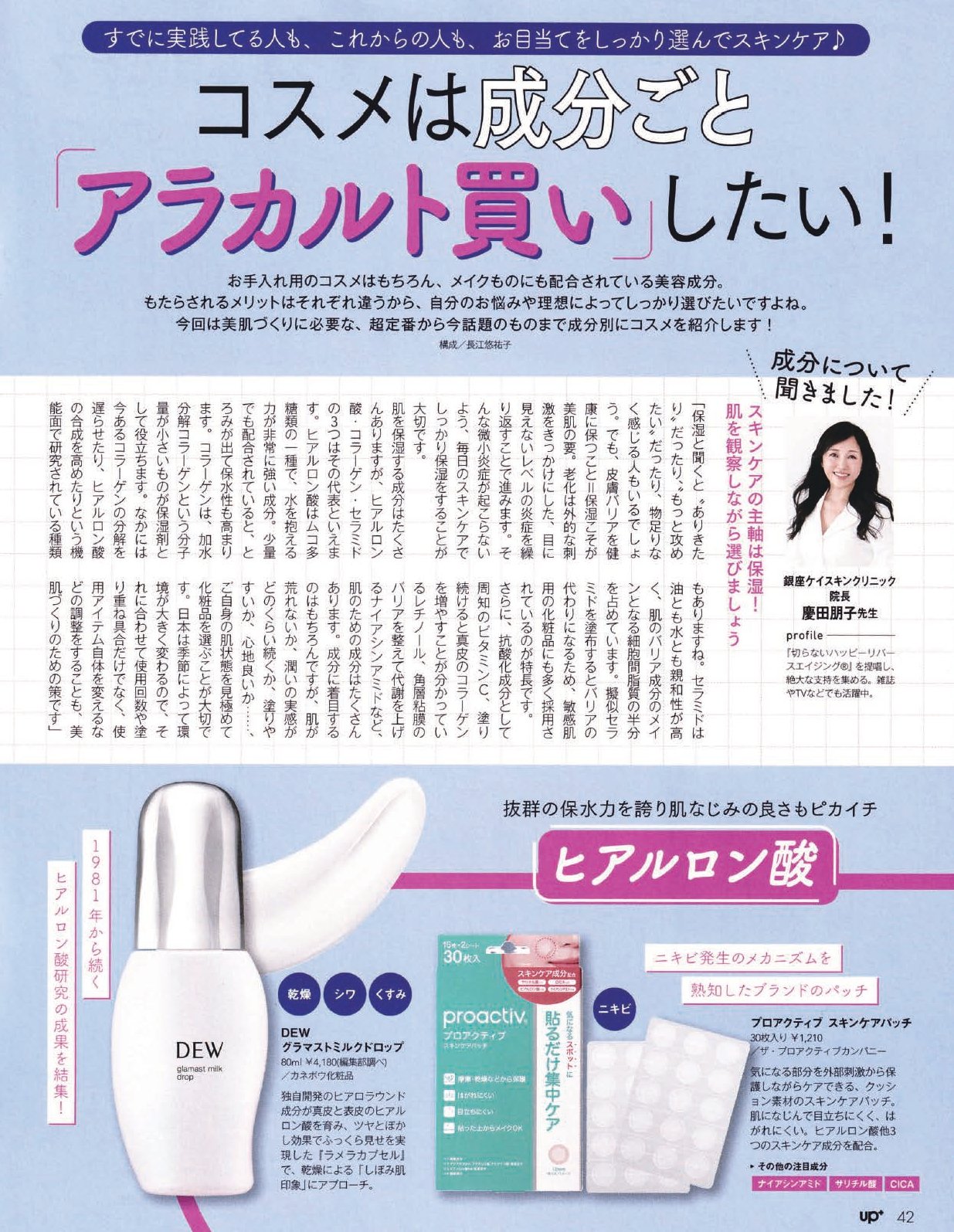 特集「既に実践してる人も、これからの人も、お目当てをしっかり選んでスキンケア♪コスメは成分ごと「アラカルト買い」したい!」に慶田の取材・監修記事が掲載されました。