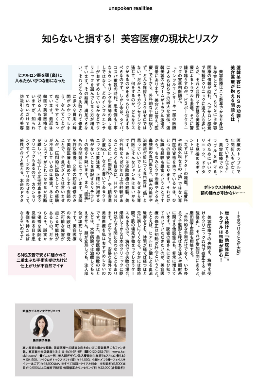 02.282025 メディア掲載 雑誌 『Numero TOKYO』2025年4月号 『Numero TOKYO』2025年4月号雑誌『Numero TOKYO』2025年4月号(2025年3月22日発売)特集「賢く付き合いたい "美容医療"の最新事情」に慶田の取材・監修記事が掲載されました。