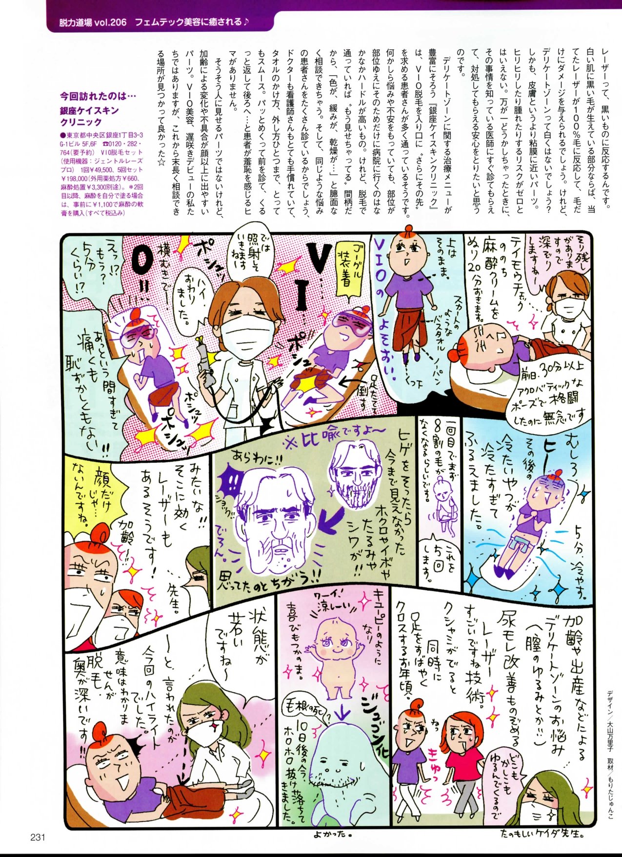 特集『デリケートゾーンこそ、相談できるかかりつけ医が欲しいと思っていました VIO脱毛からピーリング、引き締めまでフェムテック美容ことはじめ』(掲載P230~231)に当院『VIOラインの医療レーザー脱毛』が掲載されました。