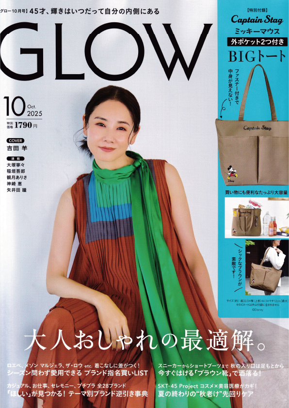 08.282025 メディア掲載 雑誌 雑誌『GLOW』2025年10月号 雑誌『GLOW』2025年10月号雑誌『GROW』2025年10月号(2025年8月28日発売)特集「コスメ×美容医療がカギ!夏の終わりの"秋老け"先回りケア」に慶田の取材・監修記事が掲載されました。