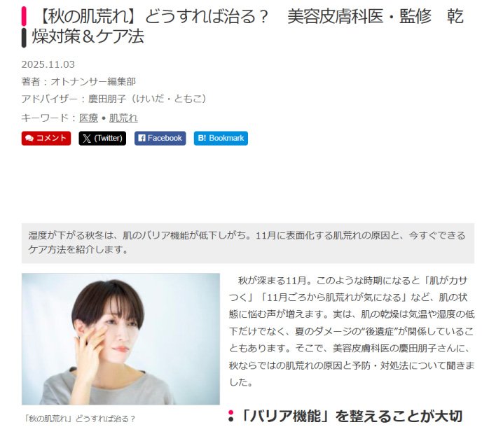 特集①「【秋の肌荒れ】どうすれば治る? 美容皮膚科医・監修 乾燥対策&ケア法」(2025年11月3日公開)