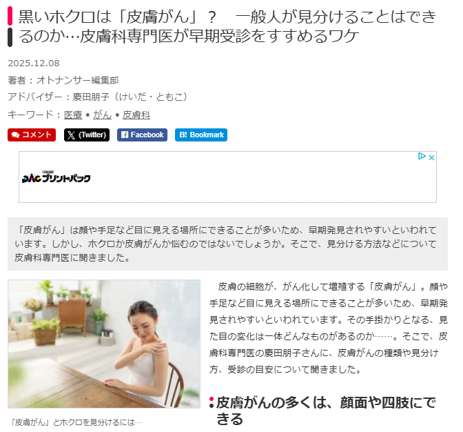 特集⑤「黒いほくろは「皮膚がん」? 一般人が見分けることはできるのか…皮膚科専門医が早期受診をすすめるワケ」(2025年12月8日公開)