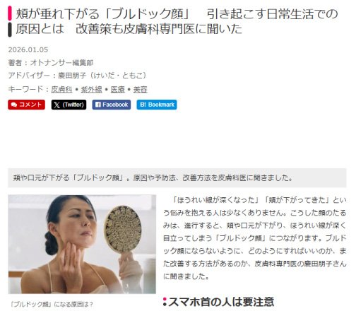 特集②「頬が垂れ下がる「ブルドック顔」 引き起こす日常生活での原因とは 改善策も皮膚科専門医に聞いた」(2026年1月5日公開)