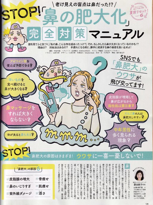04.222026 メディア掲載 雑誌 雑誌『VOCE』2026年6月号 雑誌『VOCE』2026年6月号(2026年4月22日発売 P128-129掲載)特集「『STOP!鼻の肥大化』完全対策マニュアル」に慶田の取材・監修記事が掲載されました。