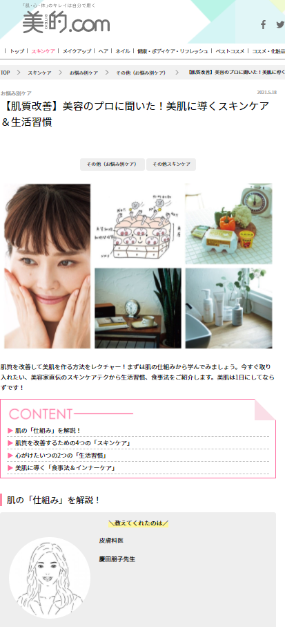 特集「【肌質改善】美容のプロに聞いた!美肌に導くスキンケア&生活習慣」に慶田院長の監修・取材記事が掲載されました。