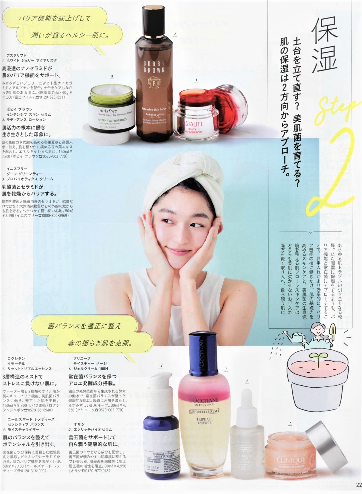 近年、美容業界で注目されている"菌活"がスキンケアの領域にも浸透してきました。人の肌には、美肌菌を代表する「表皮ブドウ球菌」、悪玉菌と呼ばれる「黄色ブドウ球菌」、環境次第で善玉菌と悪玉菌のどちらにも転ぶ「アクネ桿菌」など、300種以上の菌が生息しています。これらをバランス良く共存させることが美肌のカギです。美肌菌を育てる効果的なスキンケアは、徹底的な"保湿です。美肌菌はしっとりした環境を好みます。