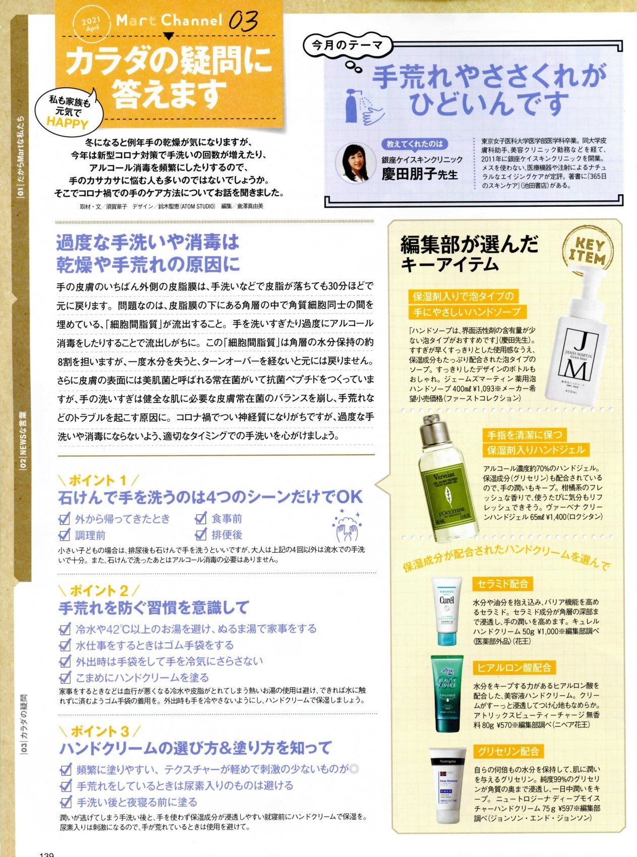 特集「手荒れやささくれがひどいんです」(掲載P139)に慶田院長の監修・取材記事が掲載されています。