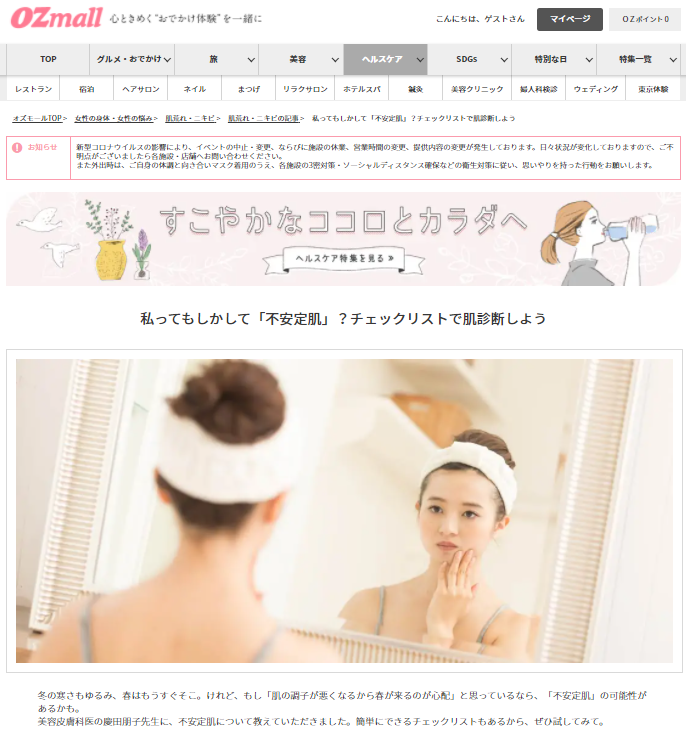 特集「私ってもしかして「不安定肌」?チェックリストで肌診断しよう」に慶田院長の監修・取材記事が掲載されています。