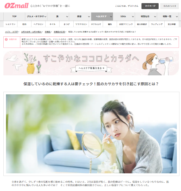 特集「保湿しているのに乾燥する人は要チェック!肌のカサカサを引き起こす原因とは?」に慶田院長の監修・取材記事が掲載されました。