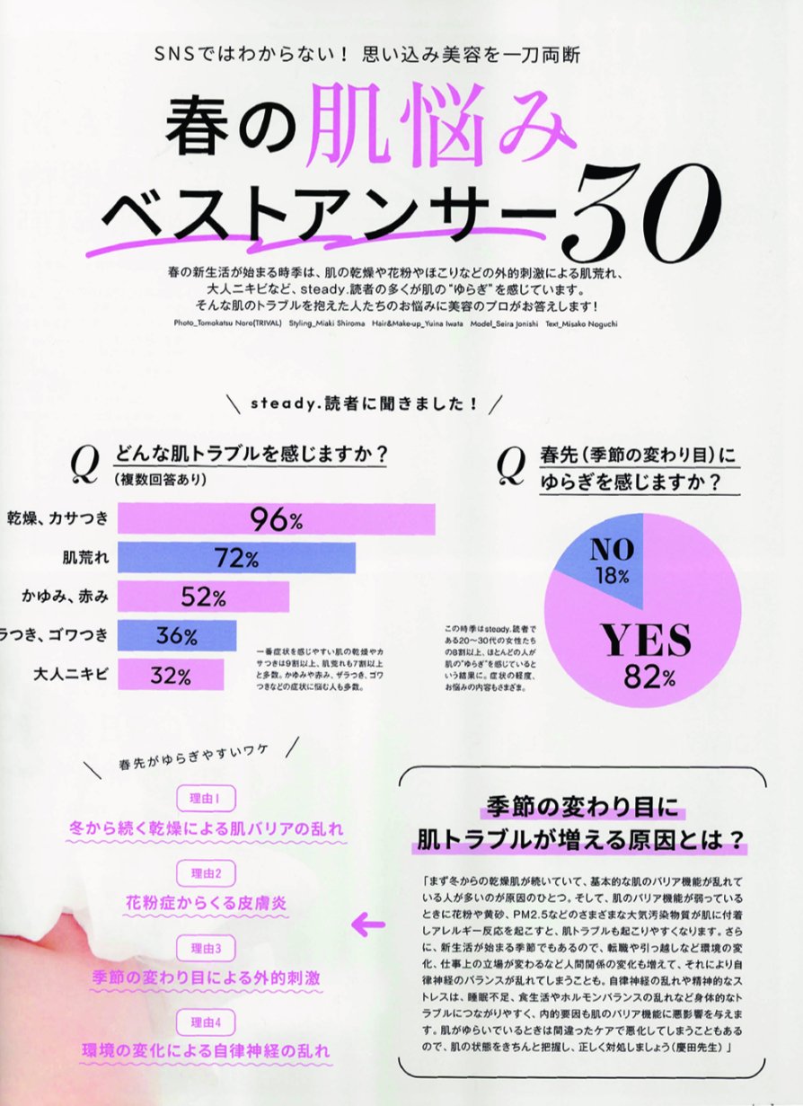 特集「SNSではわからない!思い込み美容を一刀両断春の肌悩みベストアンサー30」に慶田の取材・監修記事が掲載されました。