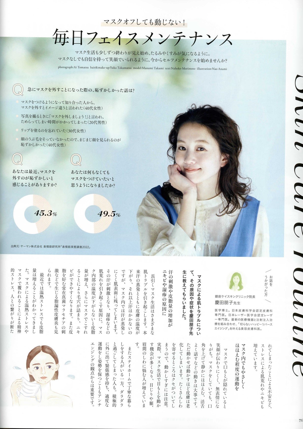 01.202023 メディア掲載 雑誌 雑誌『リンネル』2023年3月号(2023年1月20日発売) 雑誌『リンネル』2023年3月号(2023年1月20日発売)特集 マスクオフしても動じない!" 毎日フェイスメンテナンス"に慶田の監修記事が掲載されました。