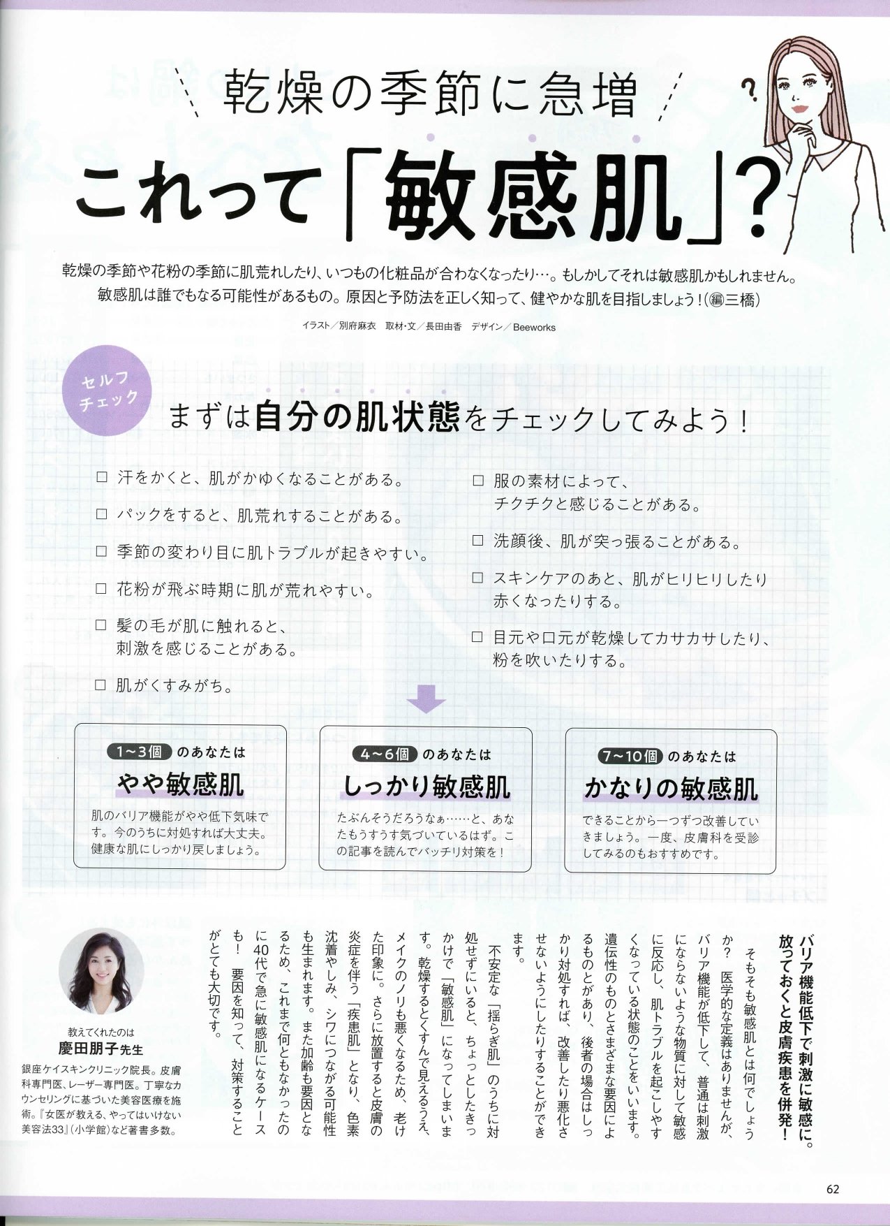 特集『乾燥の季節に急増。これって敏感肌?』(P62~64)に慶田院長の監修・取材記事が掲載されています。