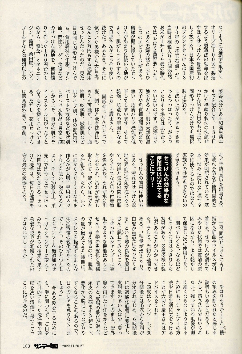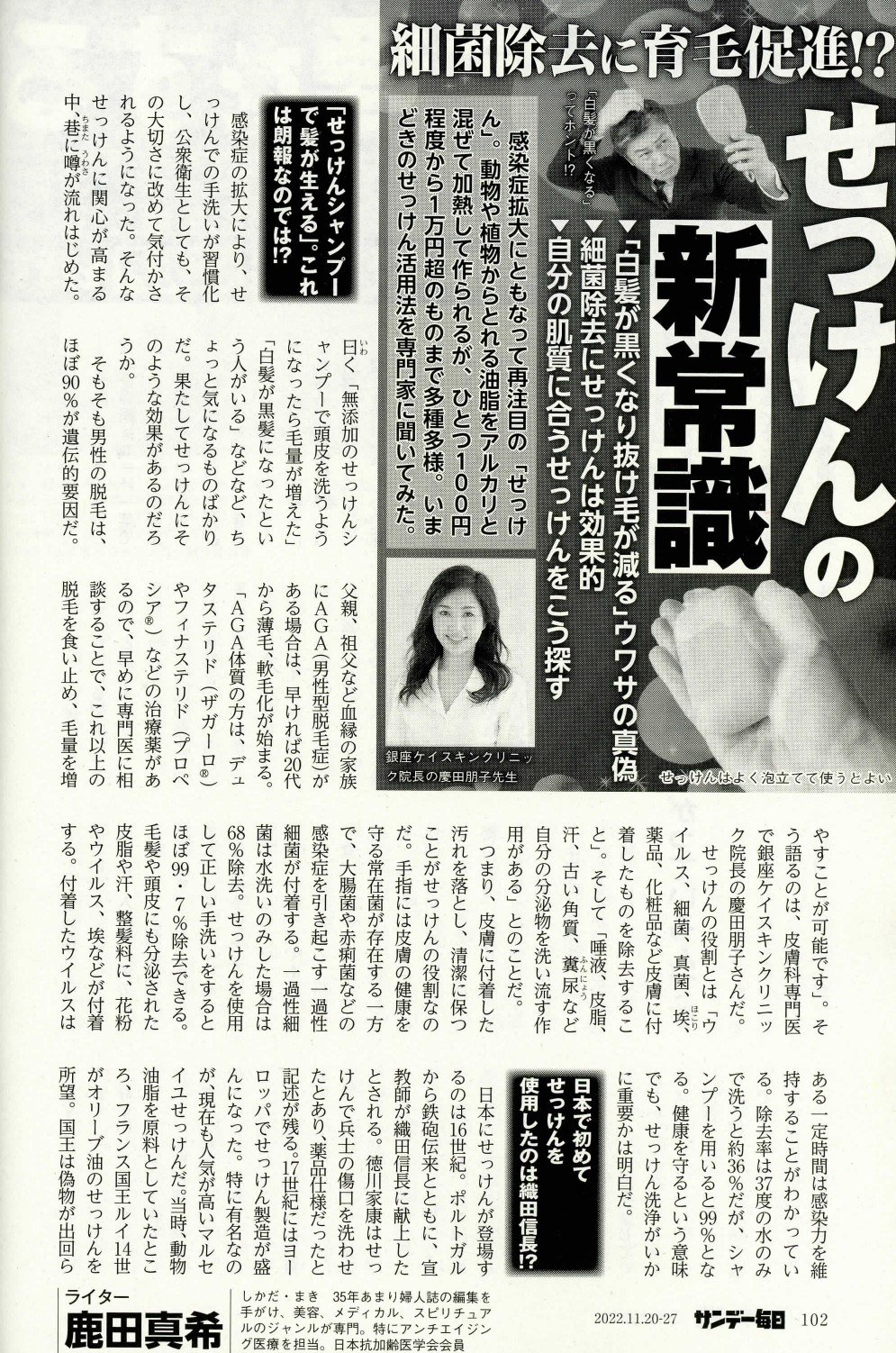 特集「細菌除去に育毛促進⁉せっけんの新常識」に慶田院長の監修・取材記事が掲載されています