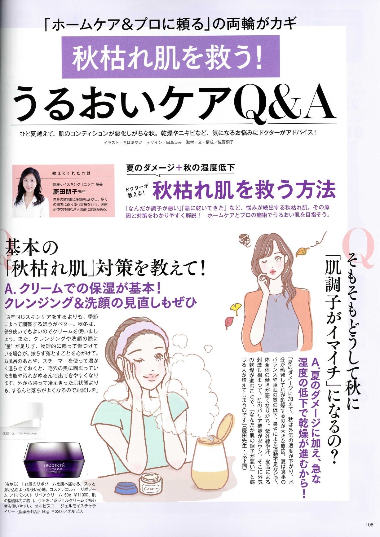特集「ホームケア&プロに頼るの両論がカギ。秋枯れ肌を救う!うるおいケアQ&A」(P108~P109)に慶田院長の監修・取材記事が掲載されました。