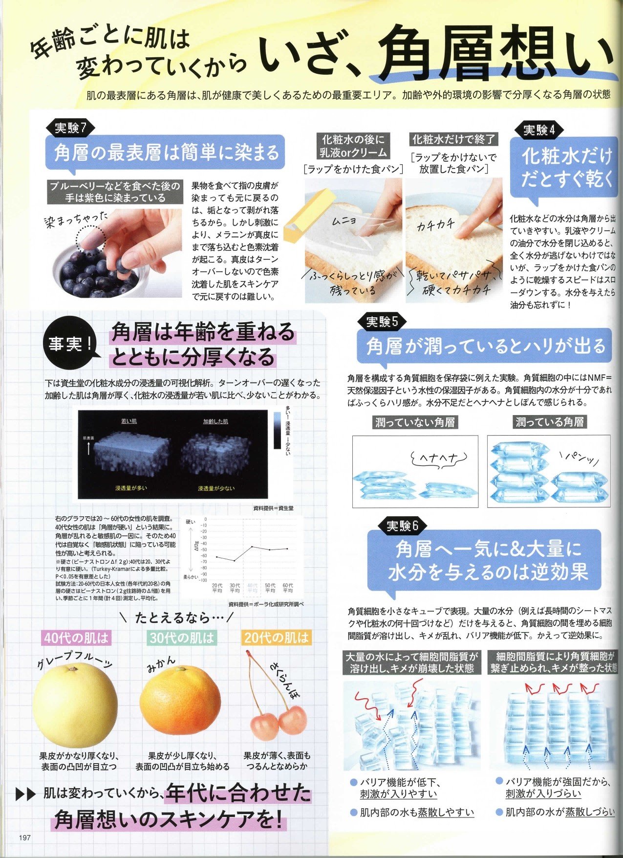 肌の最表層にある角層は、肌が健康的で美しくあるための最重要エリアです。加齢や外的環境の影響で分厚くなる角層の状態を見極めた肌年齢別のお手入れ方法をご紹介しています。