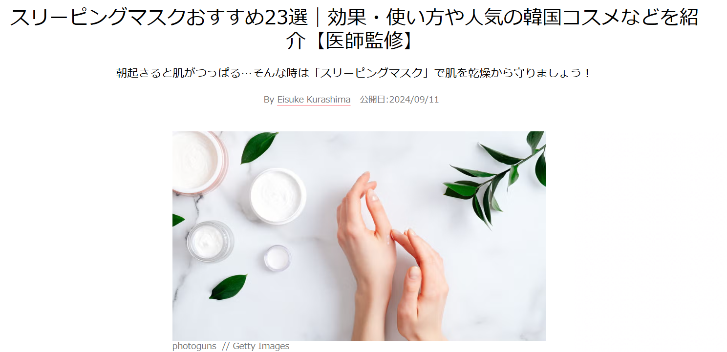 特集 【医師監修】スリーピングマスクおすすめ23選|効果・使い方や人気の韓国コスメなどを紹介に 慶田の取材・監修記事が掲載されました。