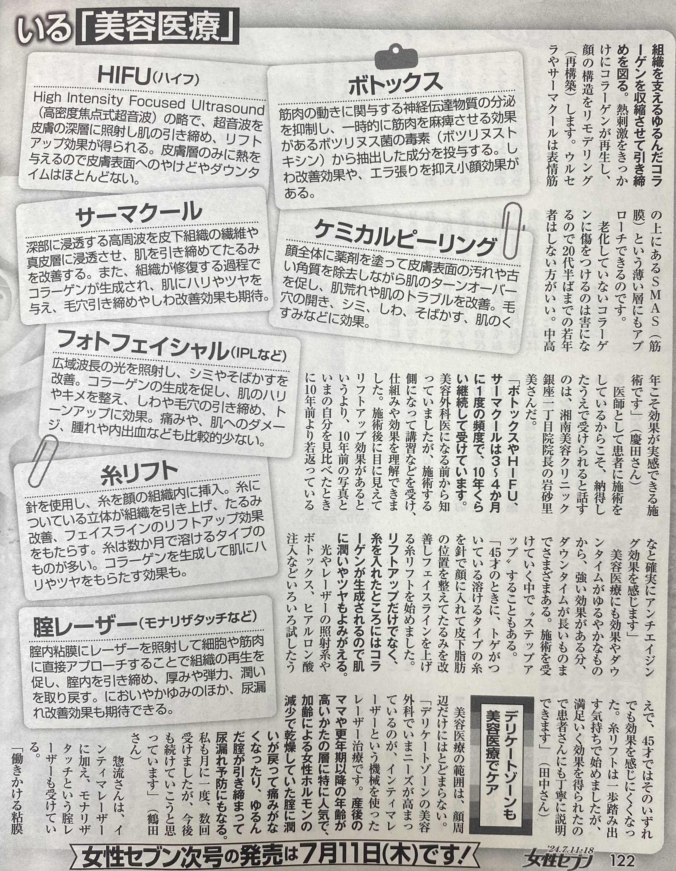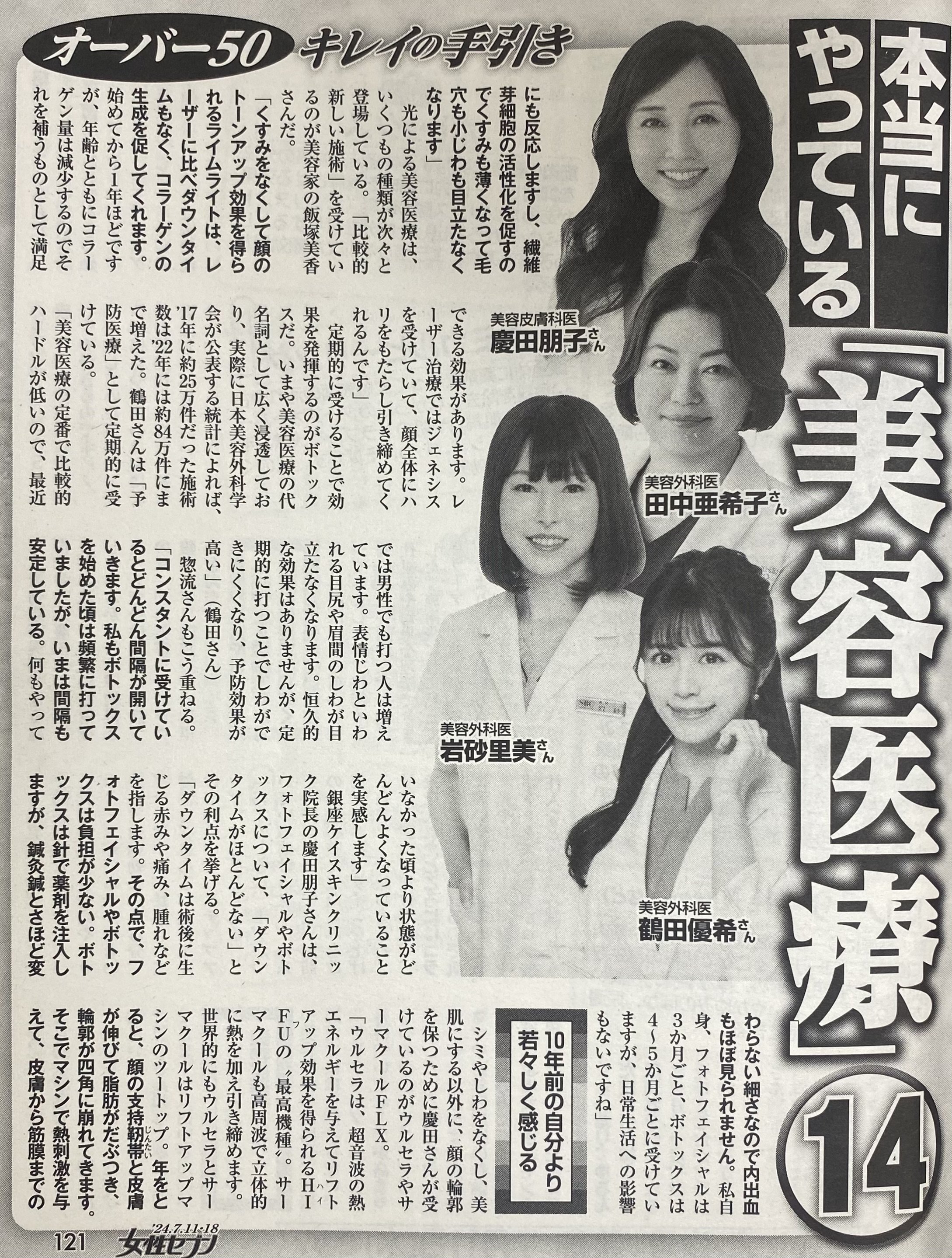特集 オーバー50キレイの手引き 美のプロ7人が本当にやっている「美容医療」 に慶田の取材・監修記事が掲載されました。