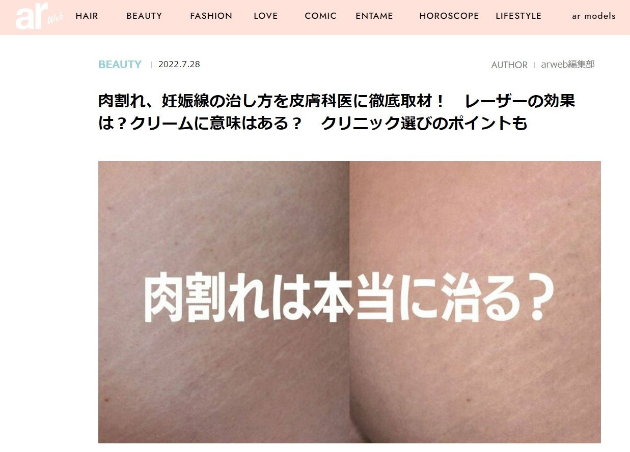 BEAUTY特集「肉割れ、妊娠線の治し方を皮膚科医に徹底取材!レーザーの効果は?クリームに意味はある?クリニック選びのポイントも」に慶田院長の監修・取材記事が掲載されました。