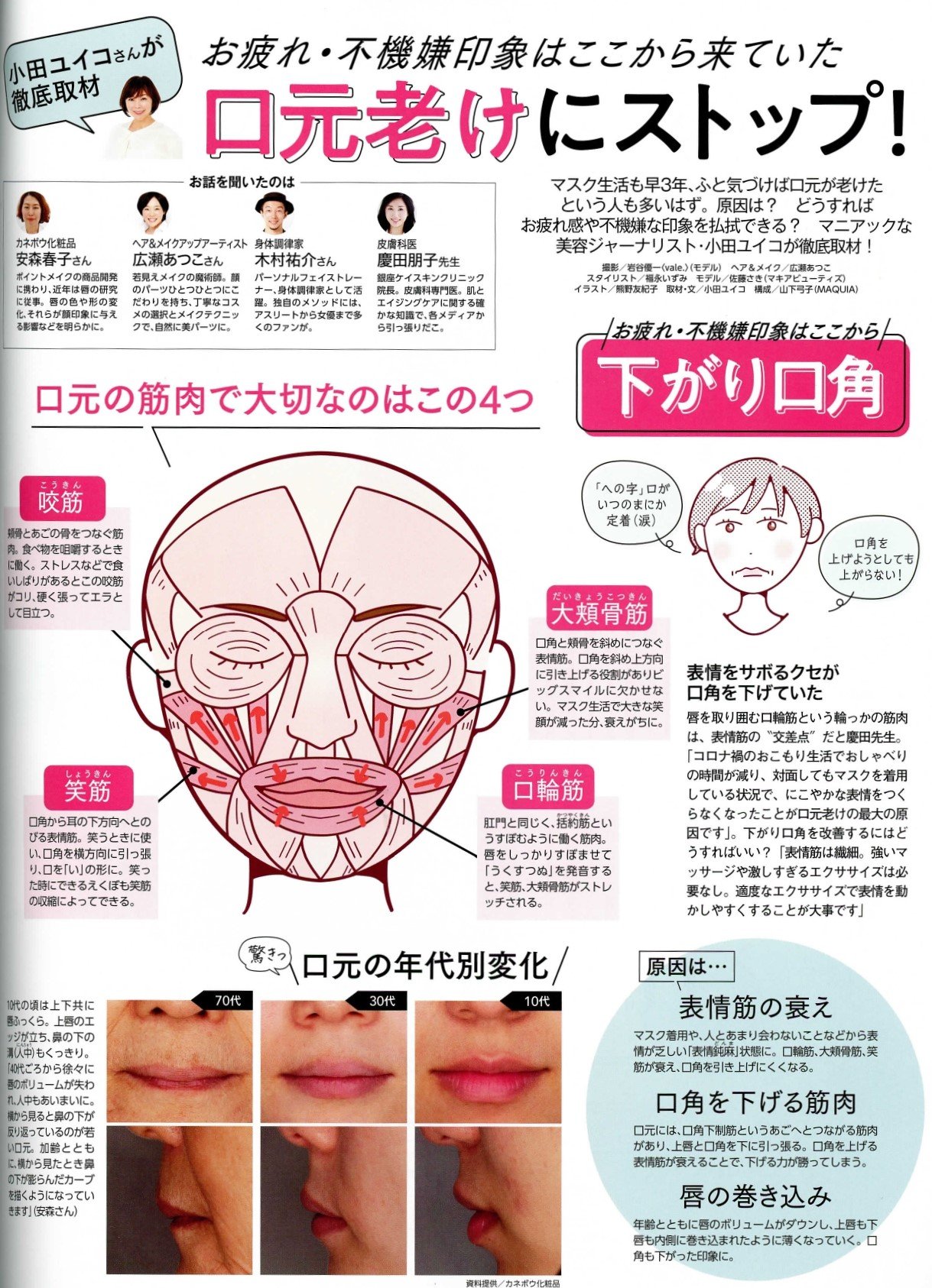 特集「お疲れ・不機嫌印象はここから来ていた 小田ユイコさんが徹底取材!口元老けにストップ!」(P190~P191掲載)に慶田院長の監修・取材記事が掲載されました。