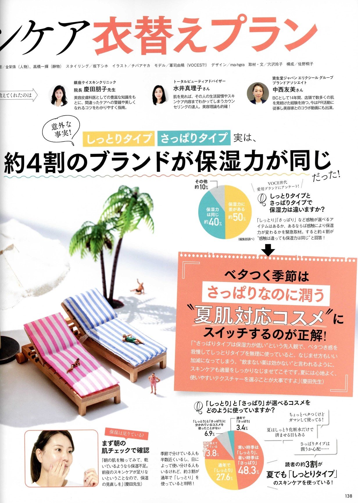 特集「ベタつきたくないけど潤いたい!夏肌対応スキンケア衣替えプラン」(P138~141掲載)に慶田院長の監修・取材記事が掲載されました。