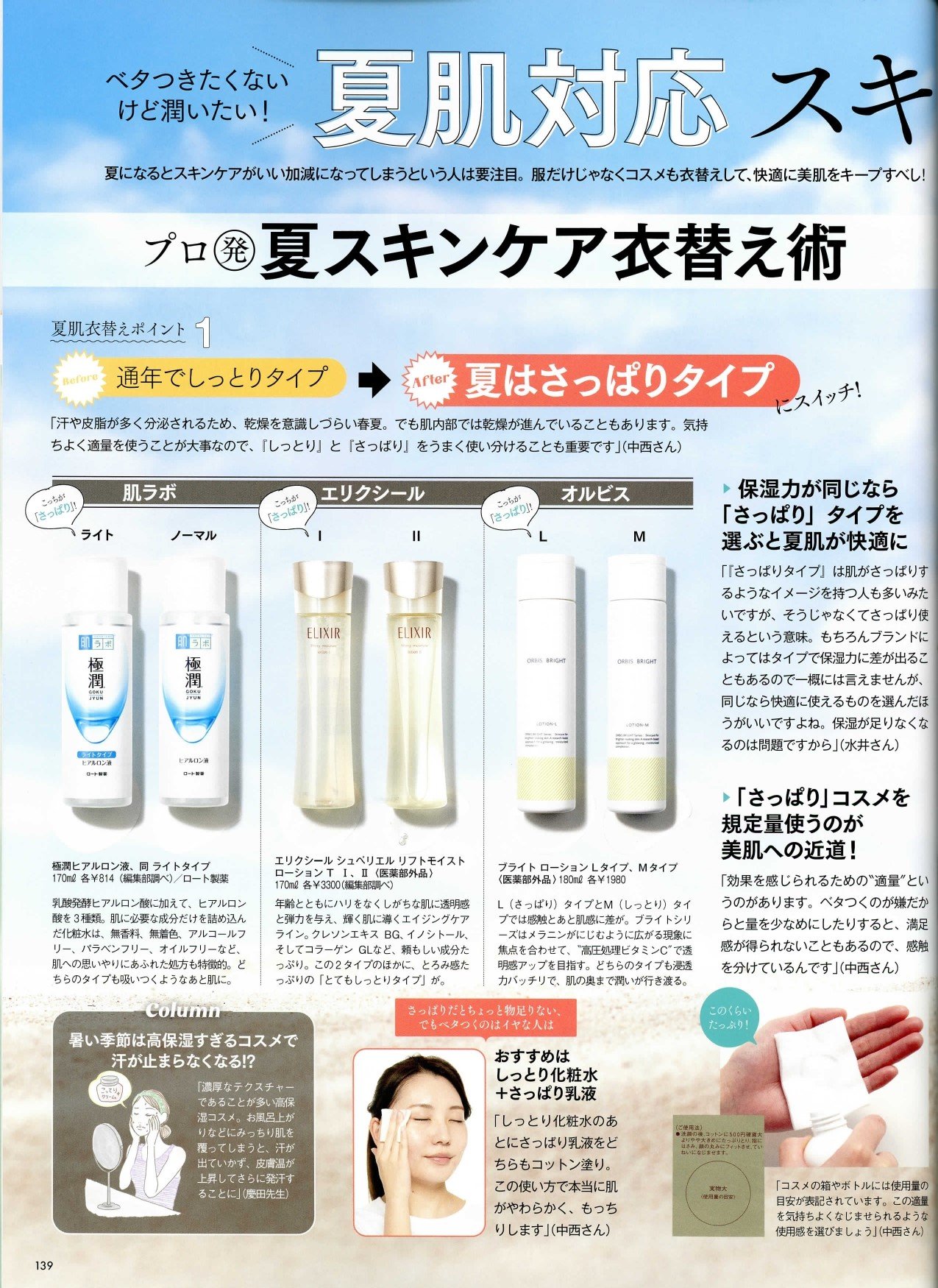 夏になるとスキンケアがいい加減になってしまうという人は要注意。服だけじゃなくコスメも衣替えして、快適に美肌をキープすべし!