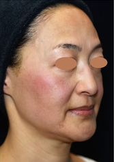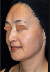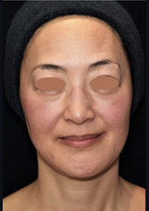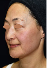 数年前から額中央とこめかみの凹み、額の横ジワ、頬のコケ感、口元のたるみや輪郭の崩れを自覚されました。True Liftポイントと輪郭形成を主体に、顔全体にヒアルロン酸注入を2回に分けて行いました。リフトアップして、影が消えシワが浅くなり美しい輪郭に整いました。同時に、肌質もふっくらとハリが出ています。ここまでしっかり仕上げると1年半~2年近くは追加注入しない場合がほとんどです。その後のメンテナンスは2~3本/1~2年で十分です。