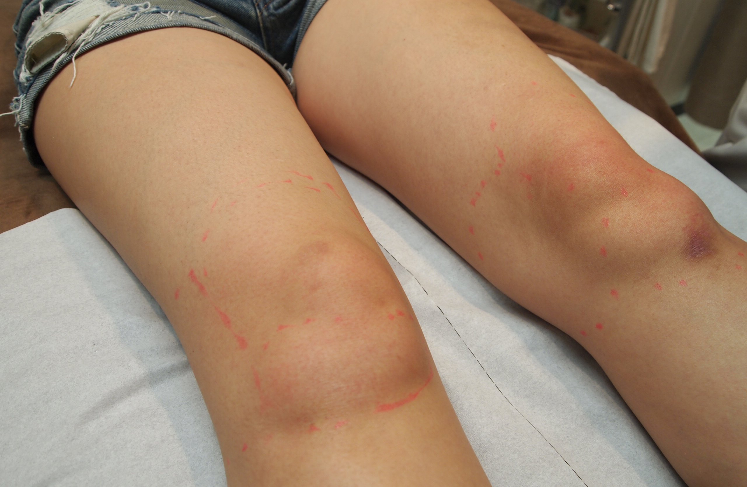 膝周りに付いた脂肪が全体的に減り、特に膝上の厚みがすっきりしました。脂肪溶解注射は、減らしたい部分のみ確実に細くできる上、セルライトも改善します。