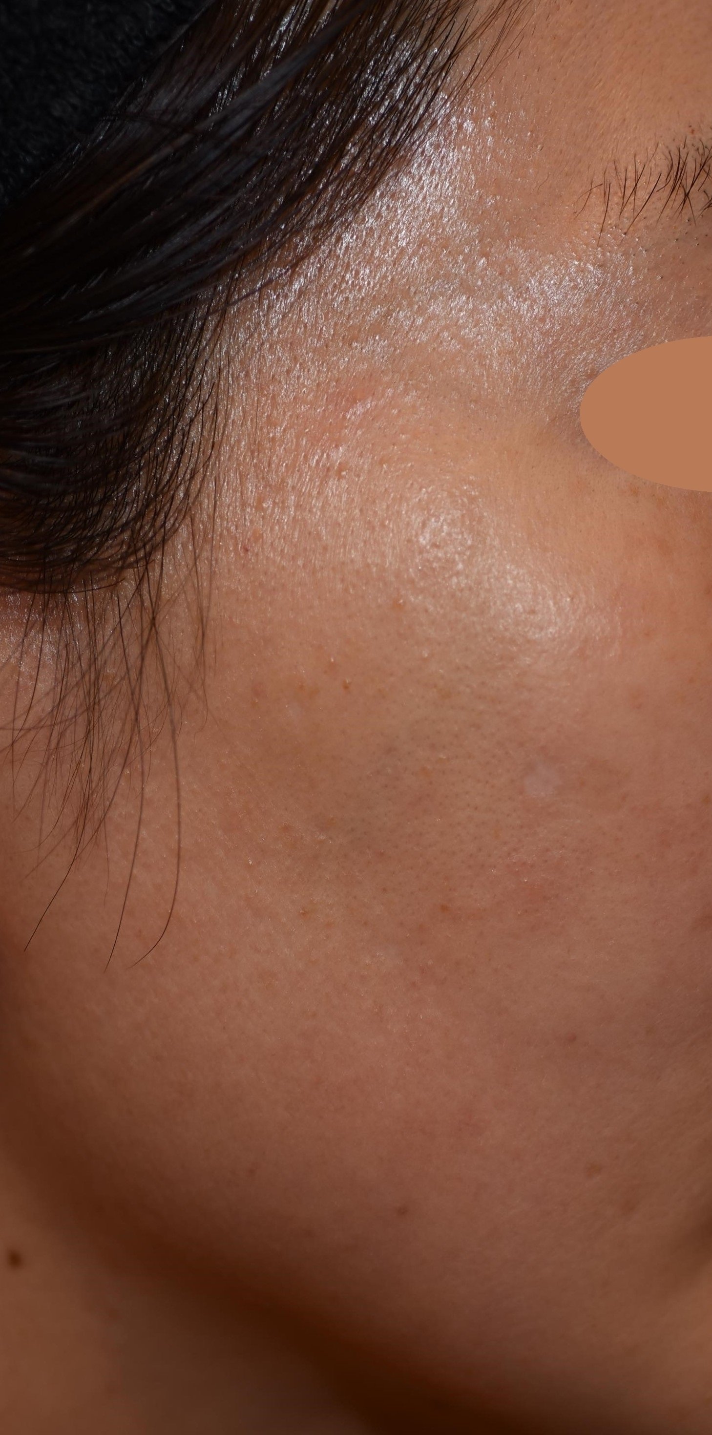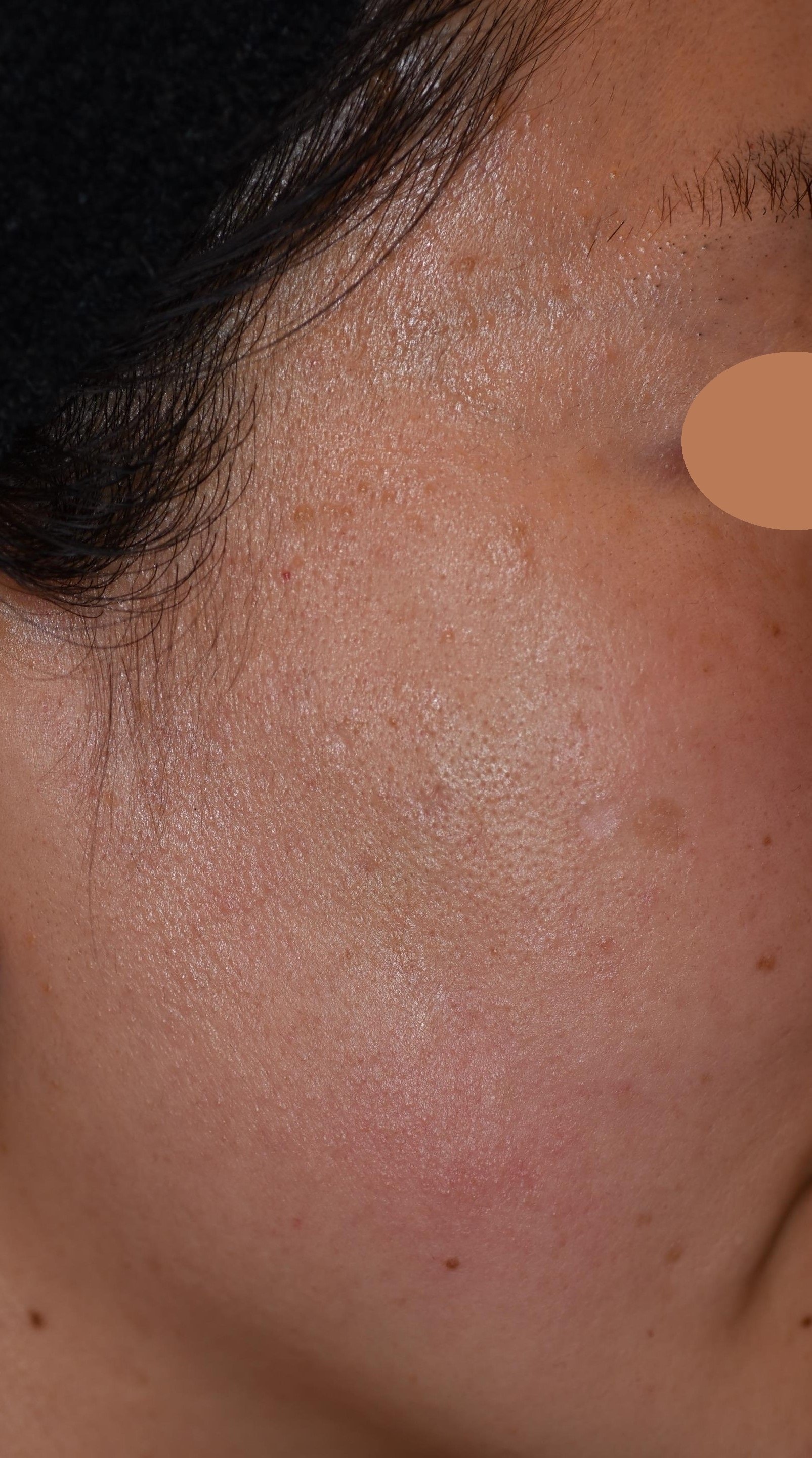 ほくろ除去は、腫瘍部位を削るCO2レーザーをご案内するケースがほとんどですが、この方のように小さなほくろはピコスポット照射で削ることなく薄くできます。1回の照射でほくろが薄くなりました。施術間隔をあけて、複数回照射すると、さらに薄くすることができます。 また、顔全体はジェントルレーズプロ照射によりうぶ毛が減少し、くすみが改善され肌色の透明感が高まりました。ファンデーションいらずのキレイな素肌です。