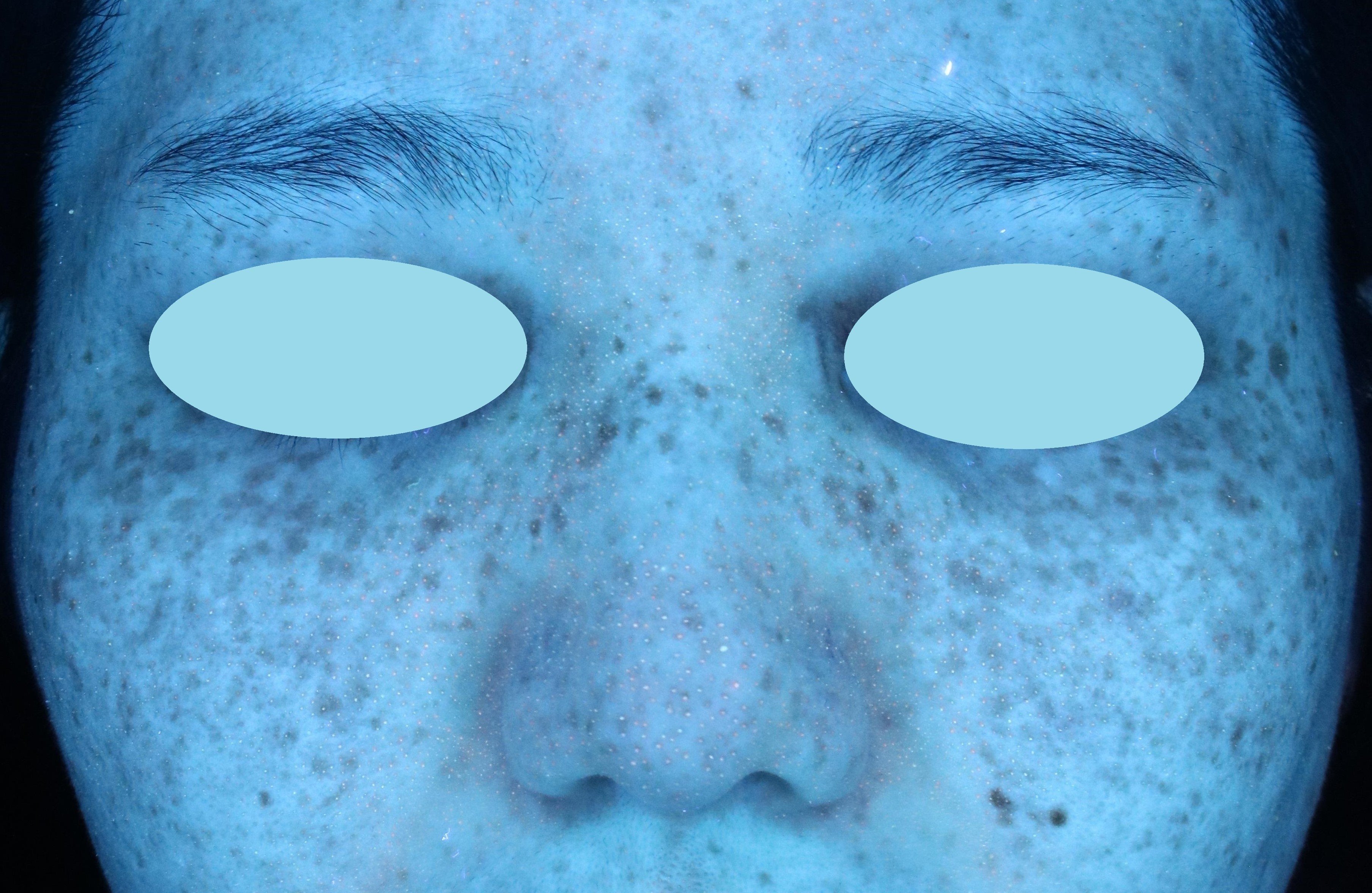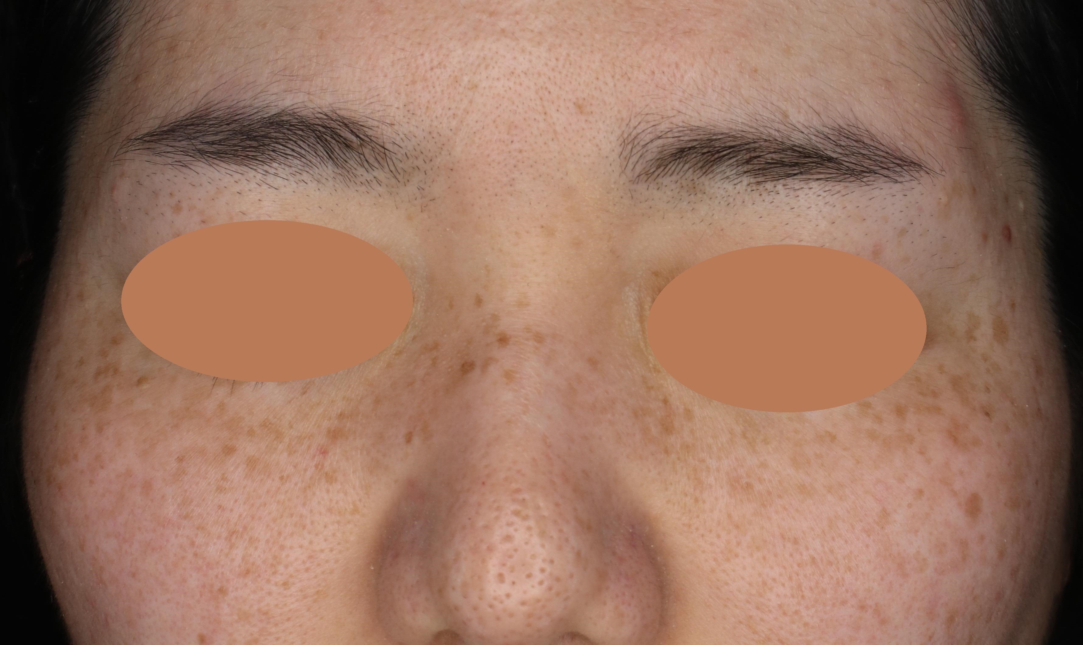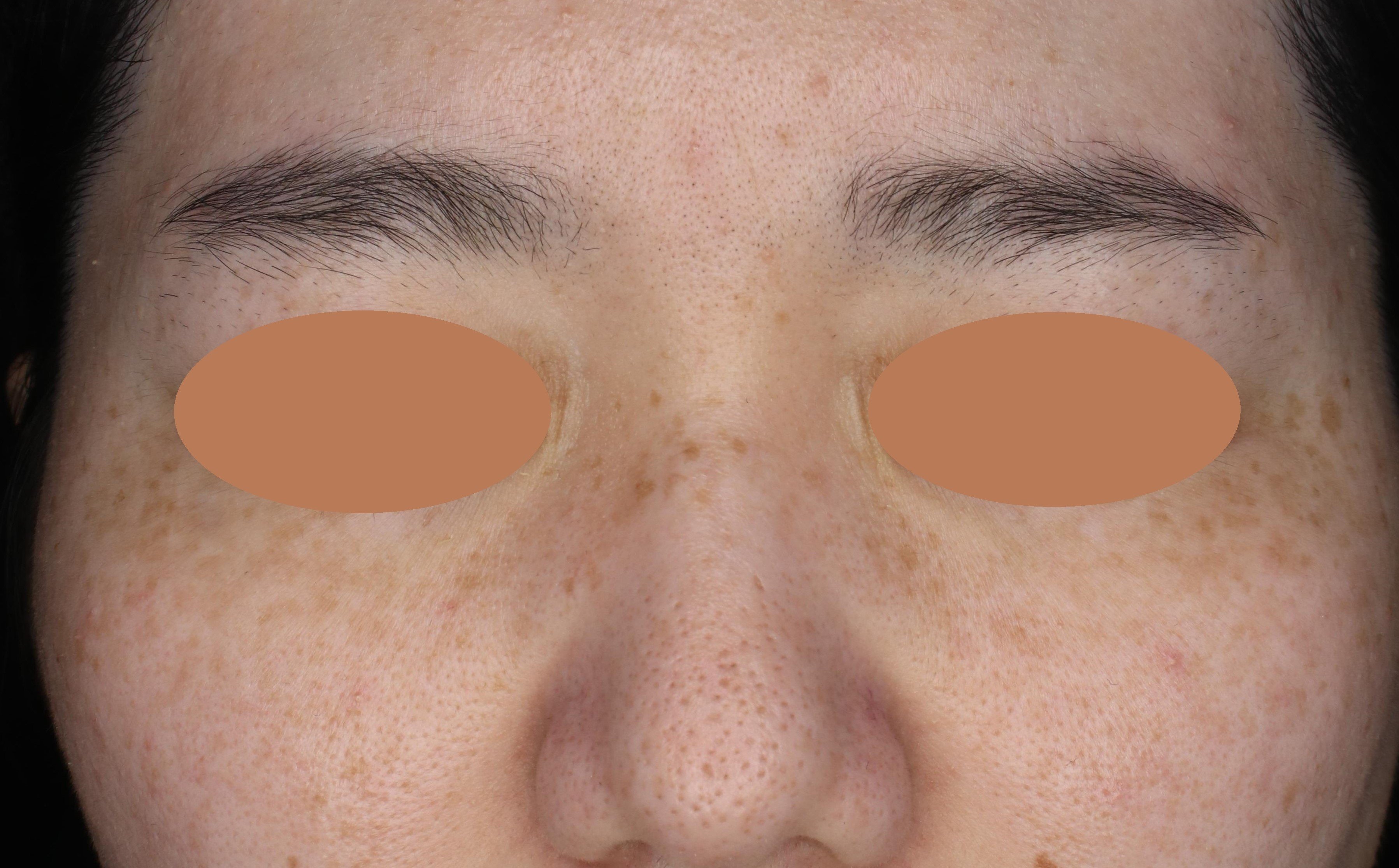 小児期より出現した雀卵斑の治療目的で、フォトフェイシャルM22の照射とホームケアとして内服・外用の使用を開始しました。施術から1ヶ月経過後には、見えて色素斑が減りました。頬には、血管に働きかける波長Vascular Treatment Filter(血管専用フィルター)重ねて照射しているので、赤みも目立たなくなり肌全体の透明感が高まりました。 1回の施術でこれだけ治療効果が出ているのは、ご自宅でアフターケア(内服薬と外用剤)をしっかり行っていただいたからです。同一条件の撮影ですので変化が分かりやすいと思います。シミ治療の効果を最大限に発揮するためには、照射治療だけでなく、抗炎症・抗酸化作用のある内服薬と医療機関専用の強力な美白剤の外用が欠かせません。