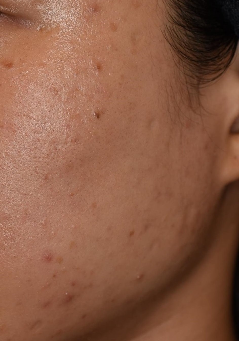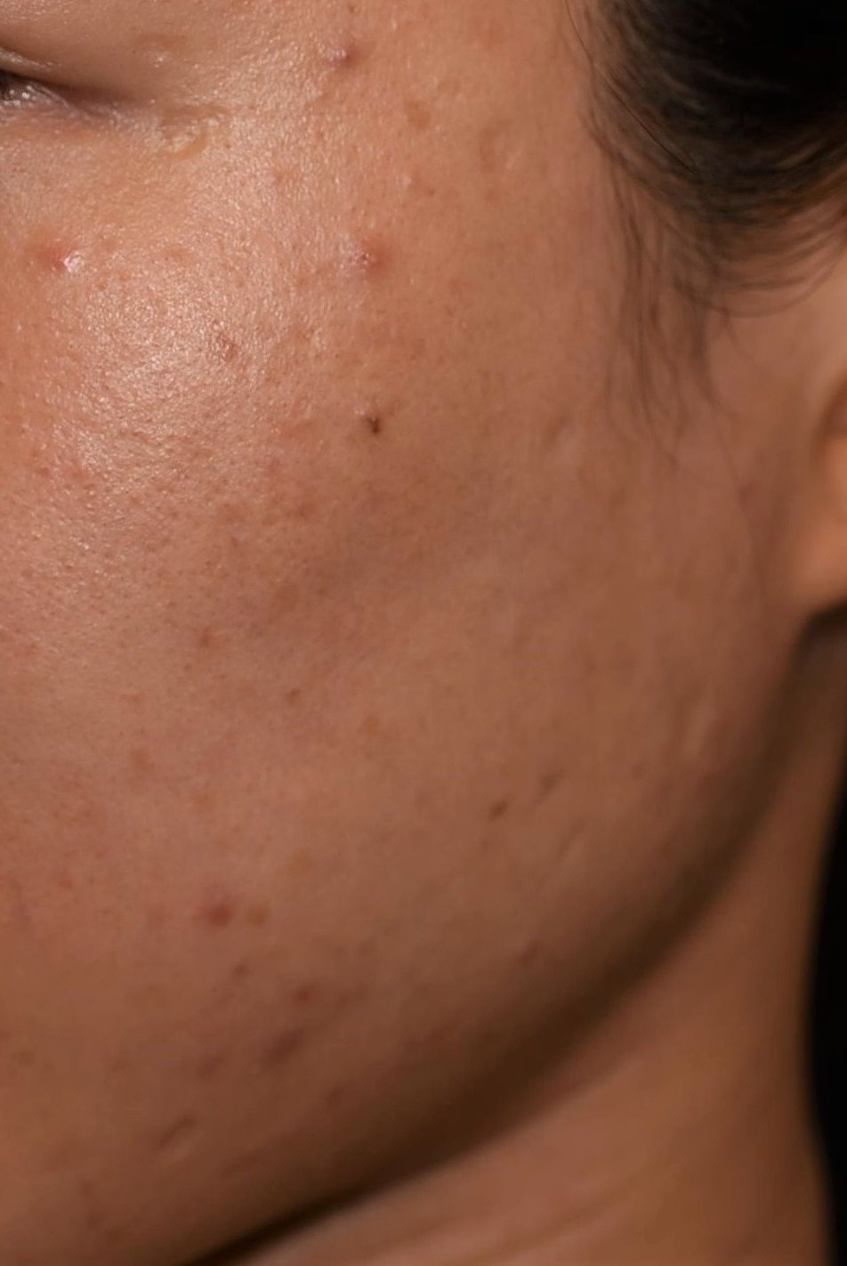 アクネモードと美肌モードの照射に加え、赤みの強いニキビにはオプションで、Acne Filterの高出力設定にて部分照射を行いました。ケミカルピーリングとの相乗効果で目立っていた炎症性の赤ニキビも細かい白ニキビも施術2日後には減り、ニキビ跡の赤みと黒ずみが薄くなり透明感のある肌になりました。