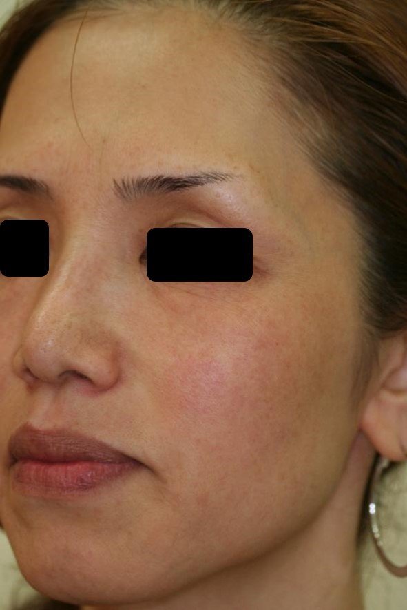 半年毎に計6回の施術を継続された3年間の経過写真です。細かいシミや肌全体のくすみが改善されて透明感のある均一な肌色に変化しました。さらにコラーゲンが増生され、ハリが高まり小じわも目立たなくなっています。施術前と比較して明らかに若返りました。当院では細かい照射設定から照射まで、すべて医師が行うので、1回で高い効果を発揮させることができます。