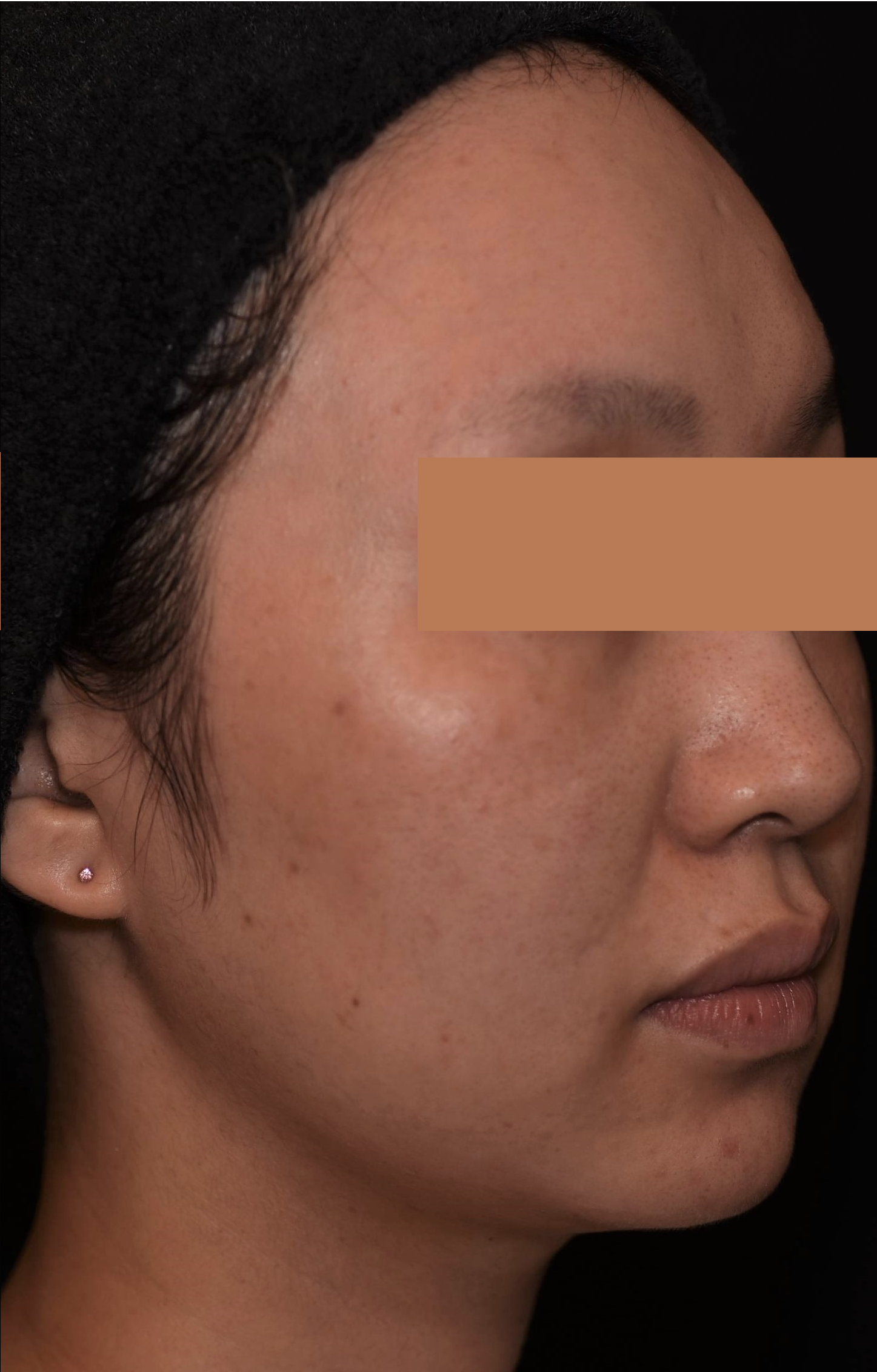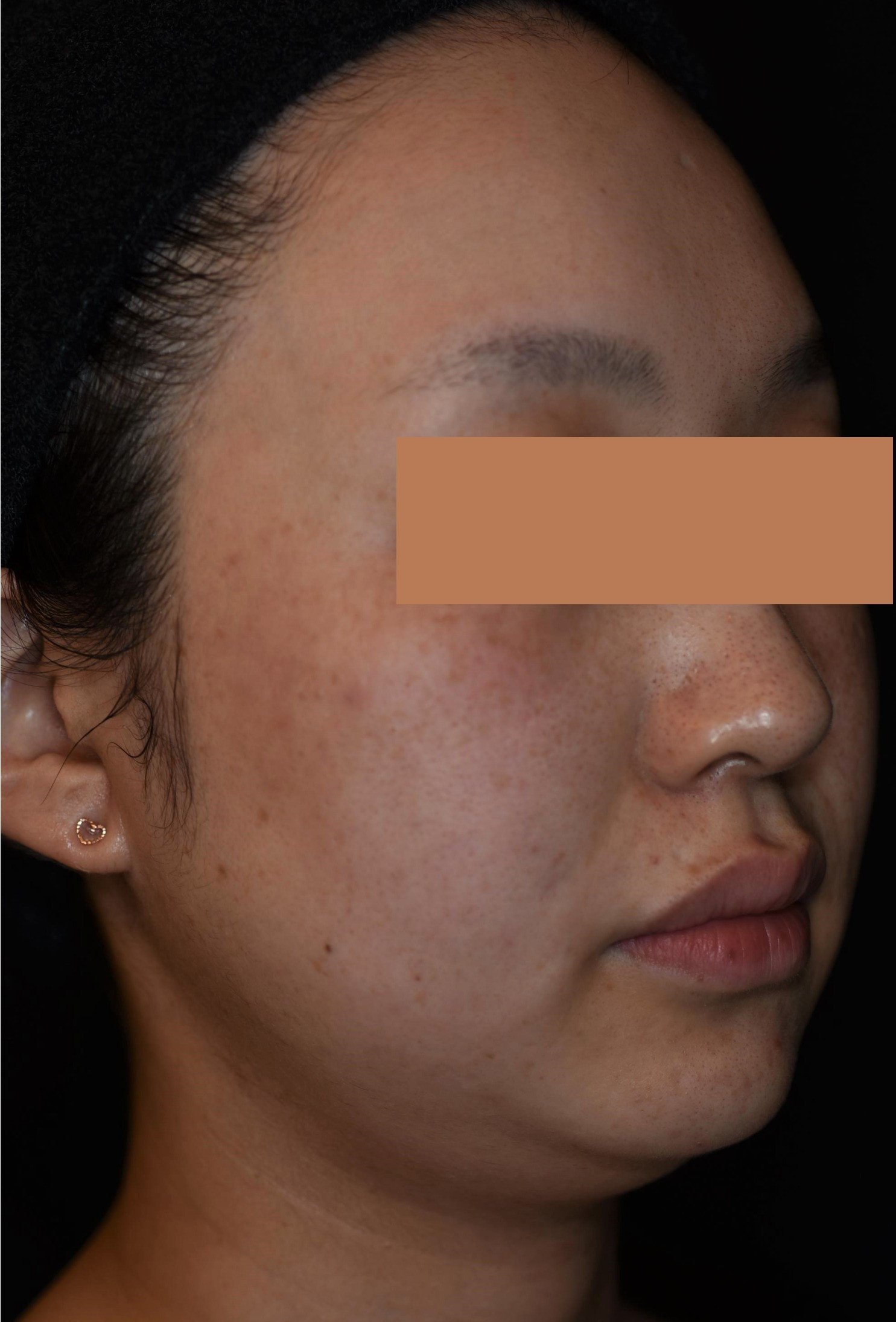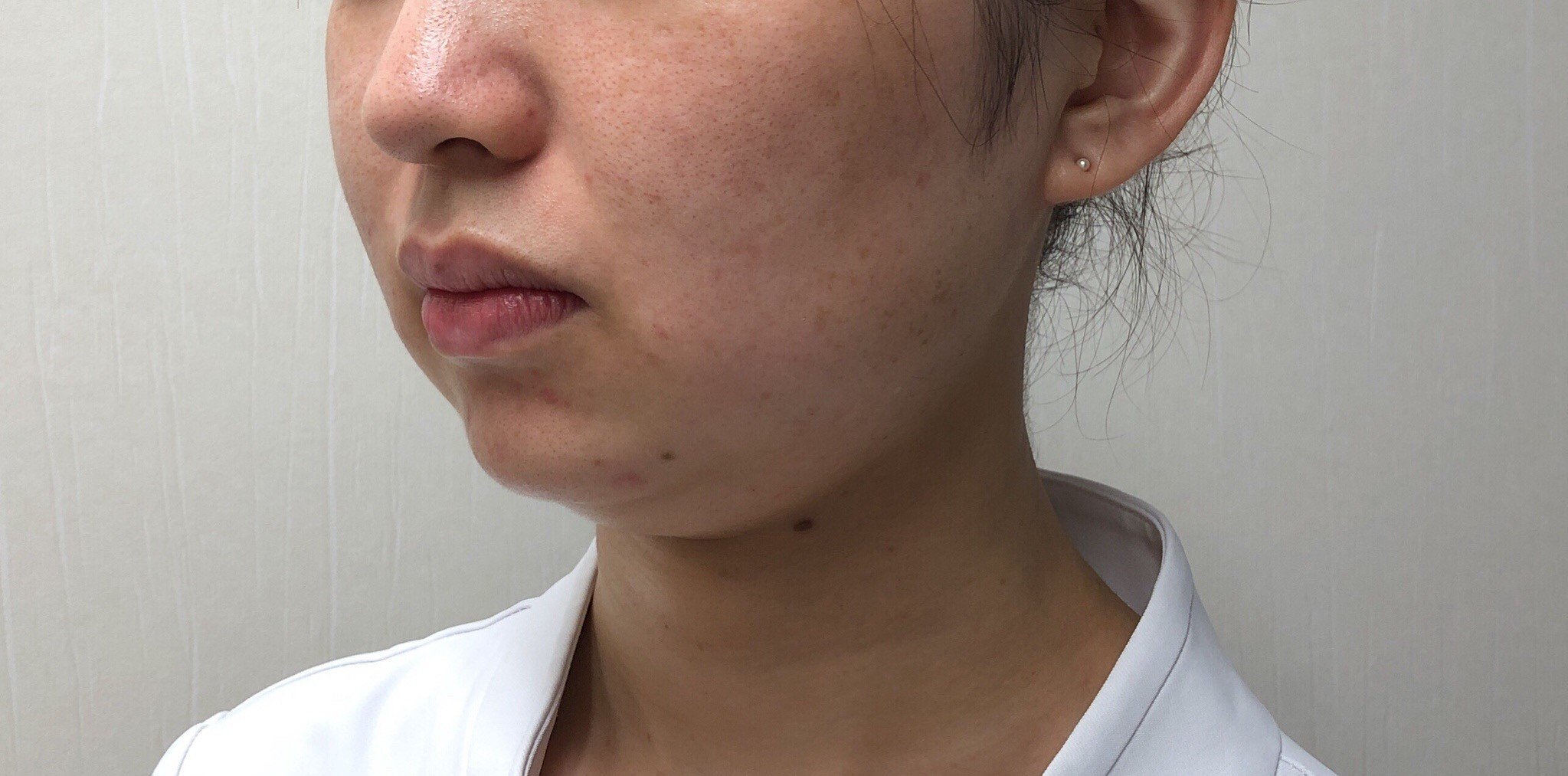 フェイスライン~あご下にかけて脂肪が増え下垂し、横から見ると二重顎が目立っていました。1回3ブロックを施術した2回目終了後から、脂肪が減少しているのが目に見えてわかるようになりました。4回目終了後には、もったりしていたフェイスラインの重みが取れて、輪郭がはっきりしました。二重あごも改善し、横顔も見違えるようスッキリしました。脂肪溶解注射後(2週間以内)に必ず受けていた『スマスアップ』のRF(高周波)とDMS(局所電気刺激)の相乗効果で、溶けた脂肪のデトックス作用が高まり、コラーゲンが新生され、より引き締まったシャープな印象になっています。