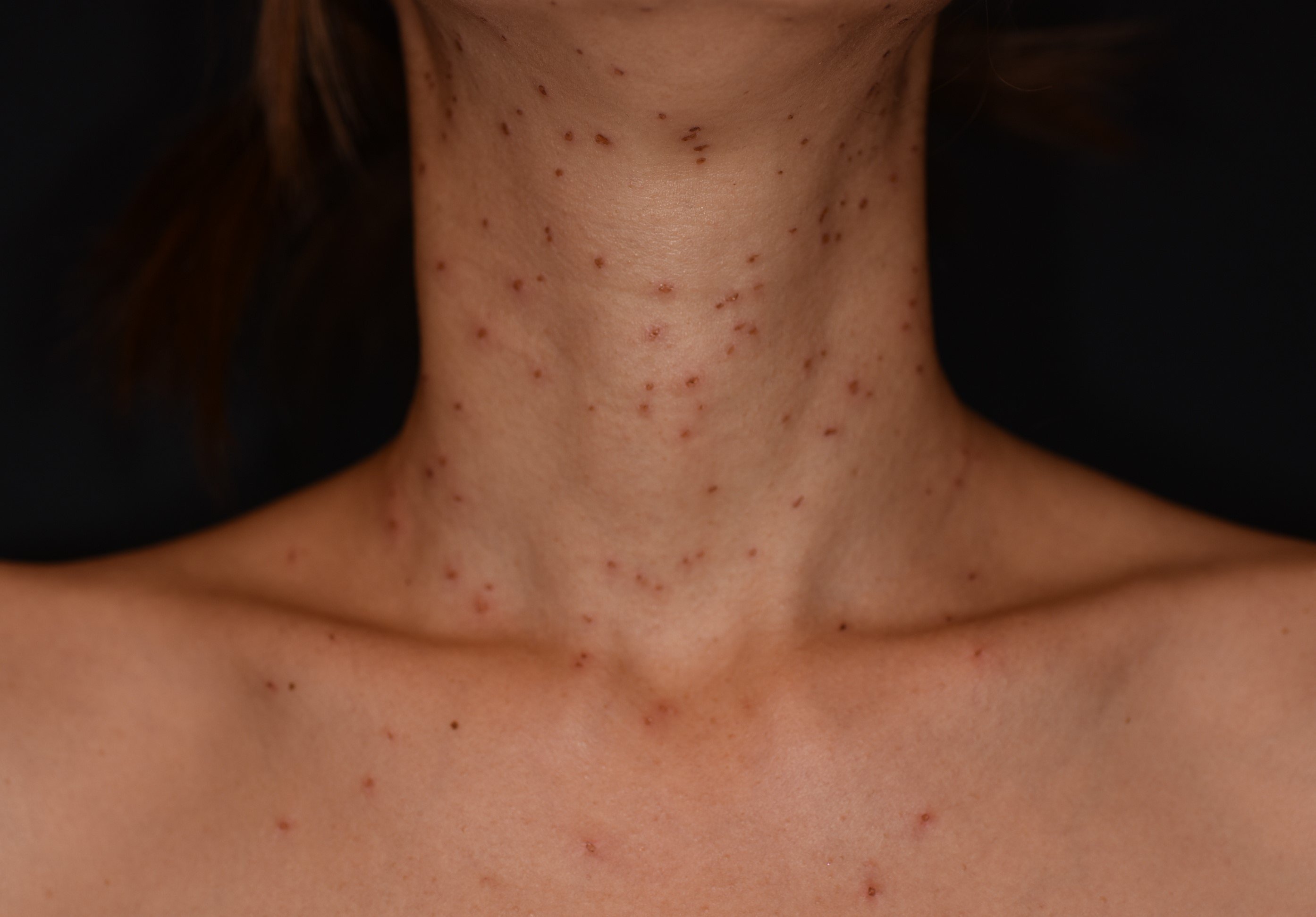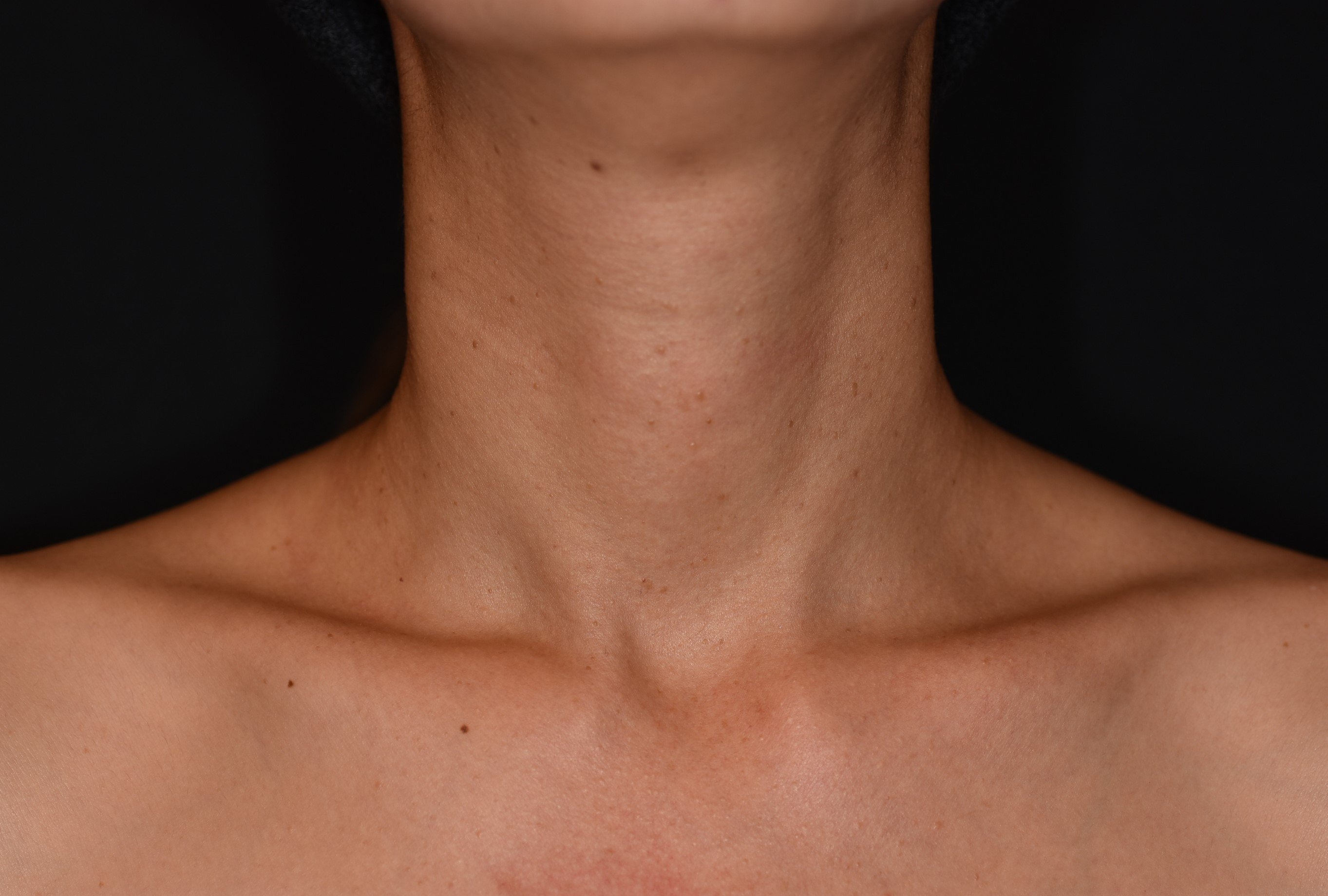 多発する首~デコルテの脂漏性角化症(イボ)とアクロコルドンの除去