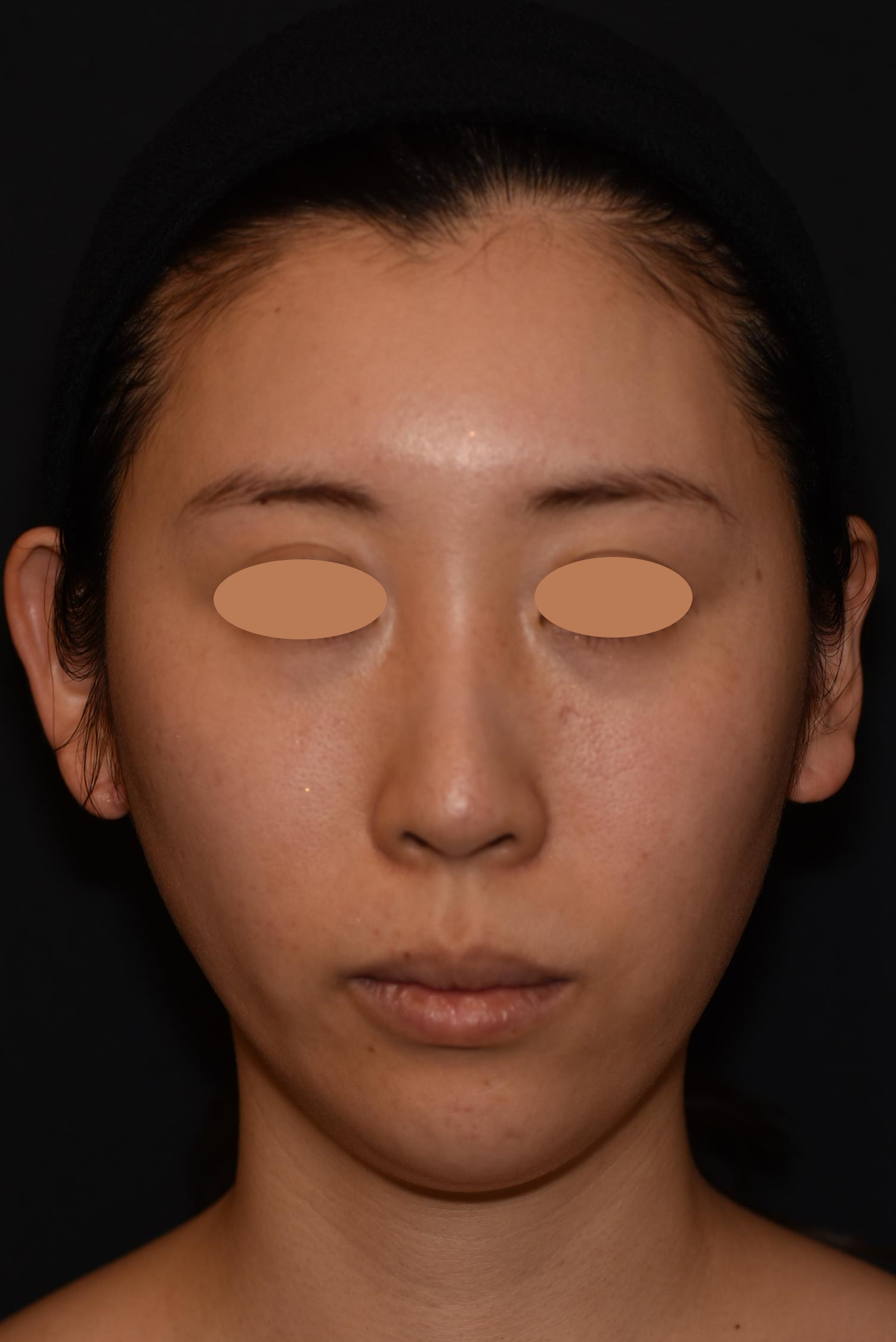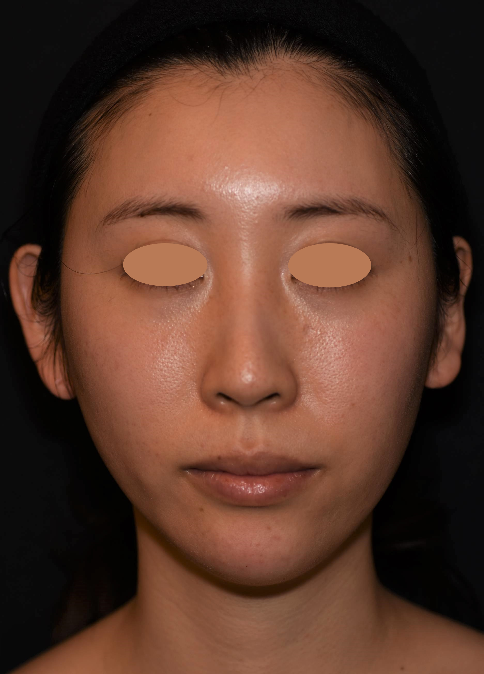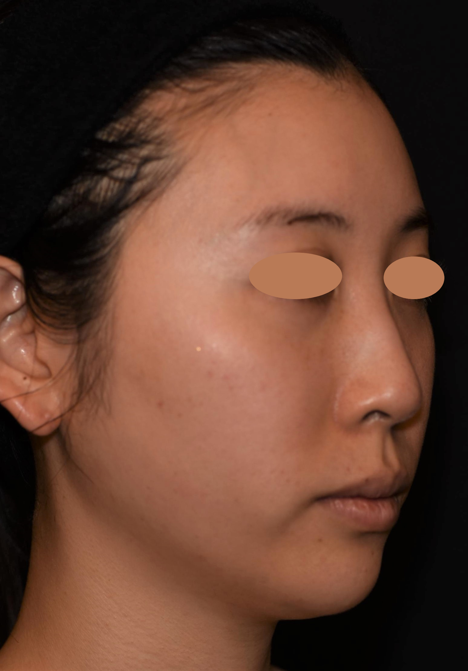 元々きれいな卵型のお顔立ちですが、あごがやや華奢な印象でした。そのため、顔と首の境目が曖昧になり、脂肪は多くないのに横から見ると二重あごに見えがちでした。通常の注入は、あごの正中線を挟んで左右2ポイントに同量で入れていきますが、症例の女性の場合、あごの頂点が左にずれていたのでど真ん中への注入で高さを出しつつ、右側だけに注入して左右均等感を高めています。さらにフェイスラインも左にハリがあったので、右側のフェイスラインの縁にも注入して左右の輪郭を整えています。 施術後は、鼻、あご、唇が一直線上に位置する「エステティックライン(Eライン)」が整って美しい横顔になりました。あごに高さが出てシャープになり、フェイスラインがよりスッキリ見えます。