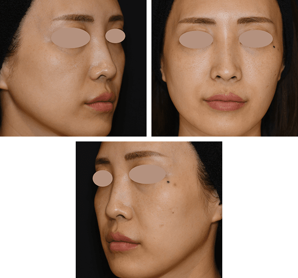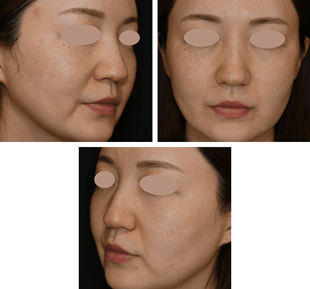 まず、中顔面のリフトポイントへ注入し、支持構造を補強して重心を引き上げます。そのうえで、こめかみ・頬外側・眼窩周囲など、萎縮している部位へ適切にボリュームを補います。重要なのは「膨らませる」のではなく、「失われた高さと曲線を戻す」ことです。骨格の美しさを損なわず、自然な陰影を再設計します。