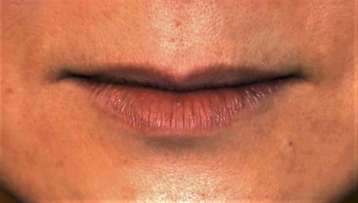 口周りの加齢変化といえば、ほうれい線やマリオネットラインをイメージするかもしれませんが、唇もまた重要なパーツです。唇は赤い部分を「赤唇」、その周囲を「白唇」、赤唇の縁を「唇紅縁」と呼びます。加齢により、唇のコラーゲン繊維、脂肪、筋肉が衰え、赤唇が薄く萎み縦ジワが目立ち、唇紅縁はあいまいになって口紅がにじむようになります。また、鼻から唇を結ぶ人中が伸びて間延びした印象に変わります。唇のヒアルロン酸注入は、唇紅縁にそってリップラインを立たせるように滑らかでハリを出す製剤を注入するので、キューピッドボウが少しめくれ上がるように唇の形が美しく際立ち、人中が短く見えます。赤唇の潤いが増して、ぷるっとするので若々しく健康的な印象に変わります。当院のこだわりは、左右対称で上唇:下唇=2:3の黄金比を作ることと、唇が悪目立ちしない上品な注入量です。50代後半の大人には、いかにも入れましたという整形唇は似合いません。自然な仕上がりに大変ご満足いただきました。